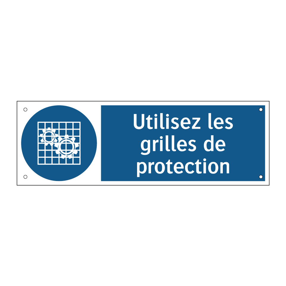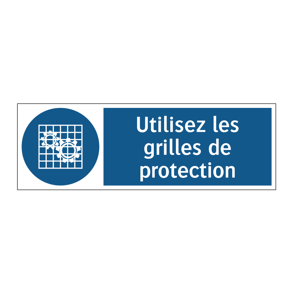 Panneau d'obligation avec le texte : "Utilisez les grilles de protection"