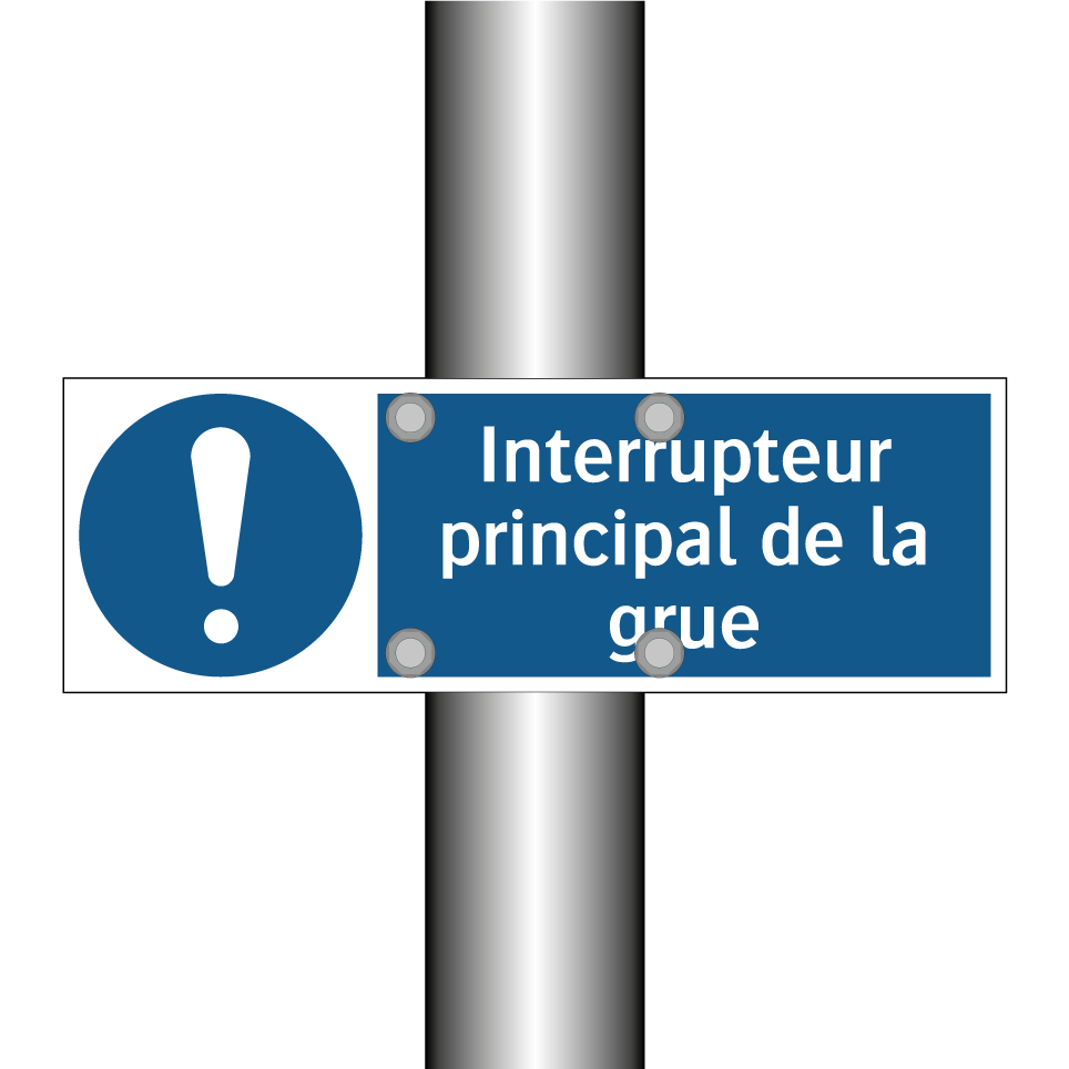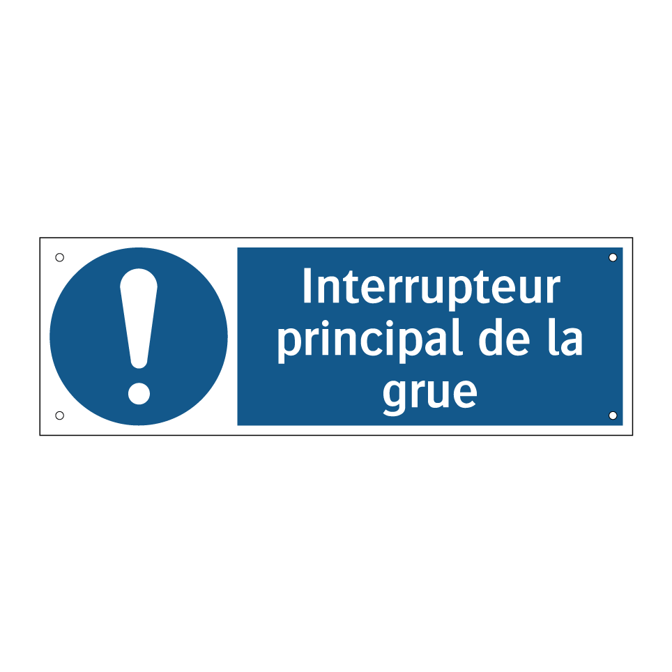 Panneau d'obligation avec le texte : "Interrupteur principal de la grue"