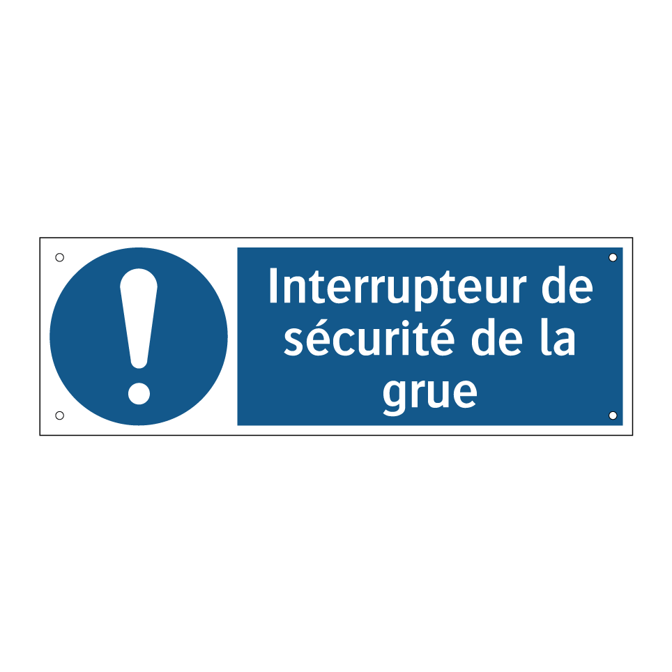 Panneau d'obligation avec le texte : "Interrupteur de sécurité de la grue"