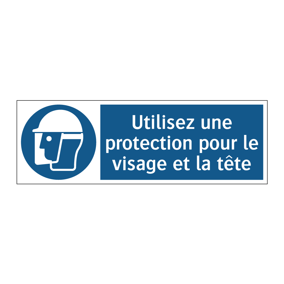 Panneau d'obligation avec le texte : "Utilisez une protection pour le visage et la tête"