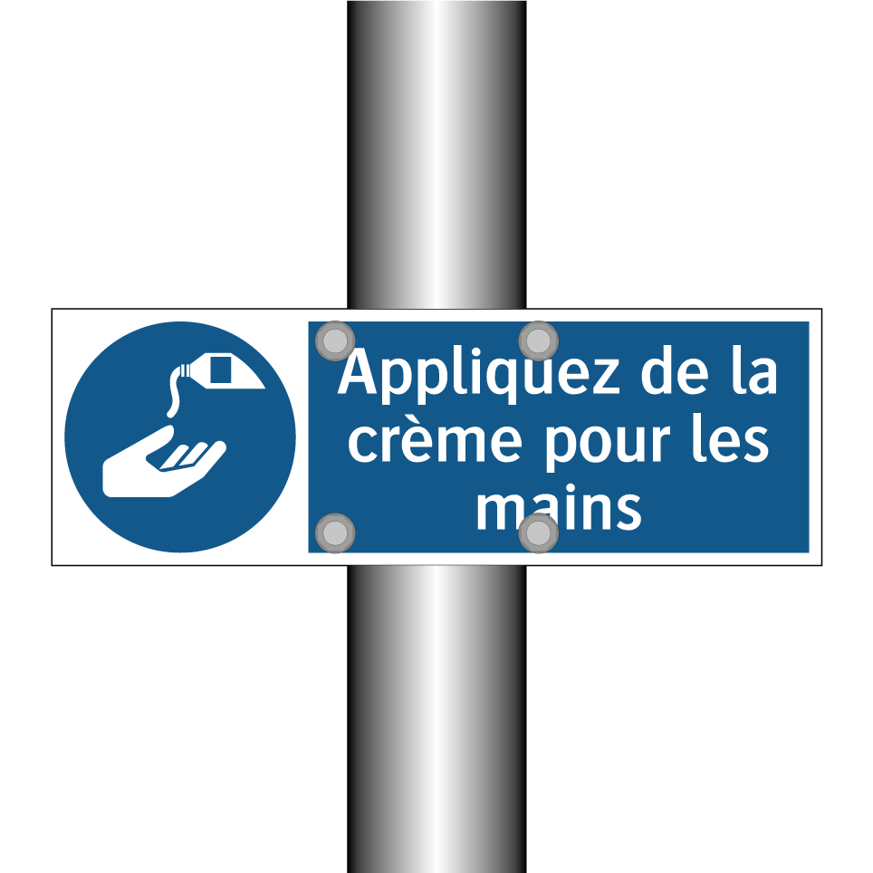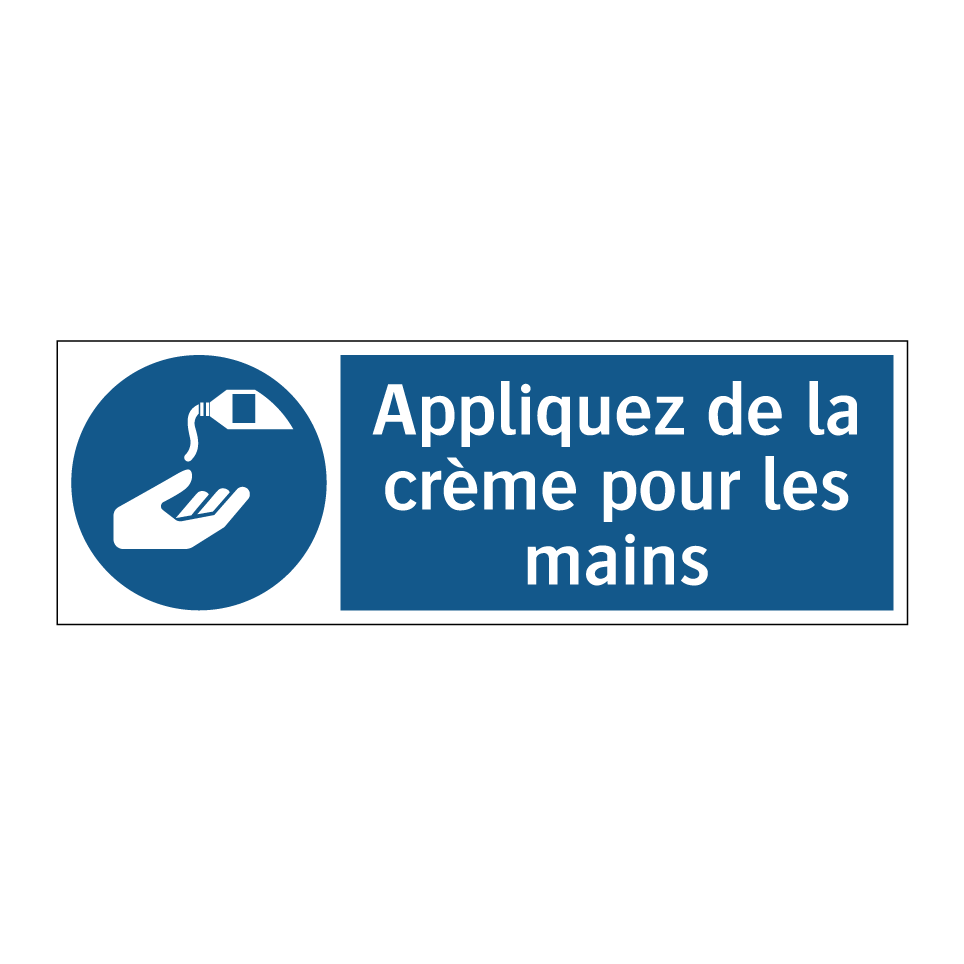 Panneau d'obligation avec le texte : "Appliquez de la crème pour les mains"