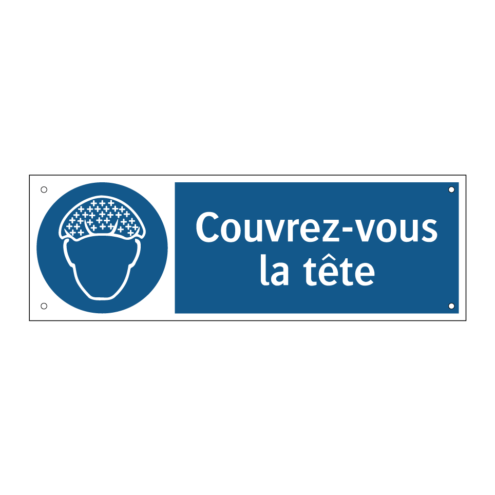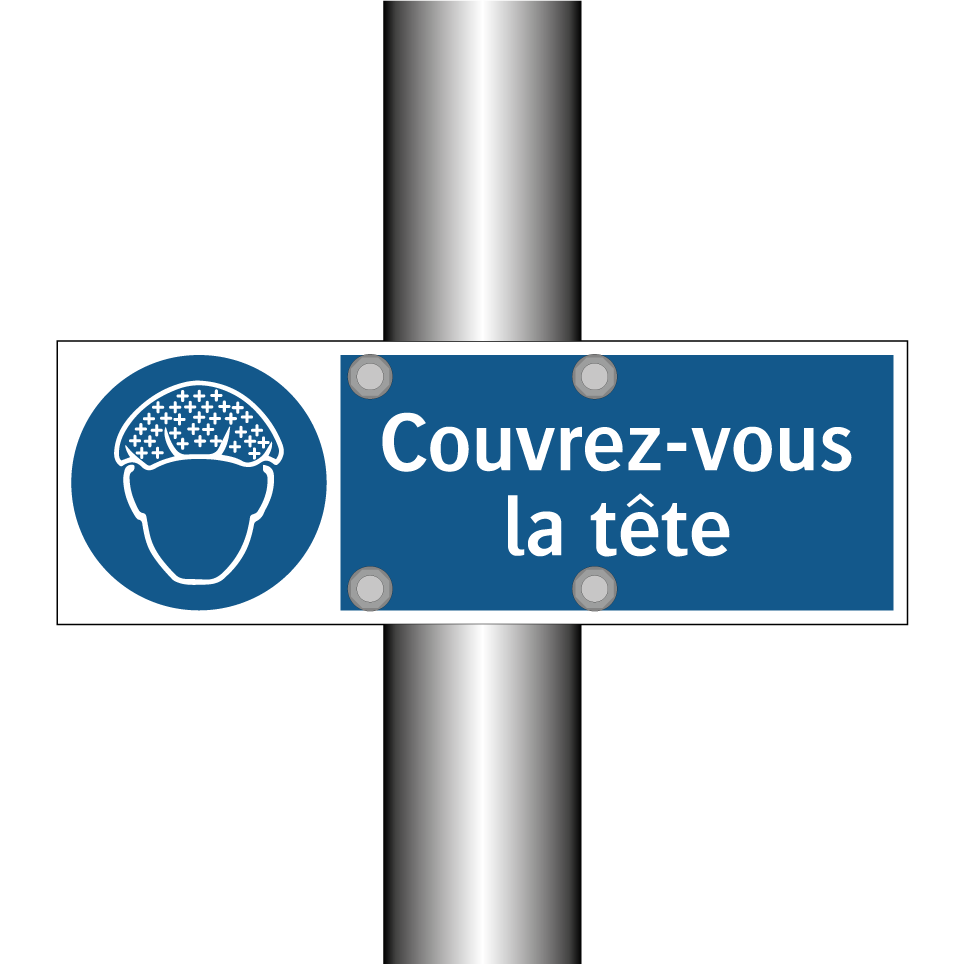 Panneau d'obligation avec le texte : "Couvrez-vous la tête"