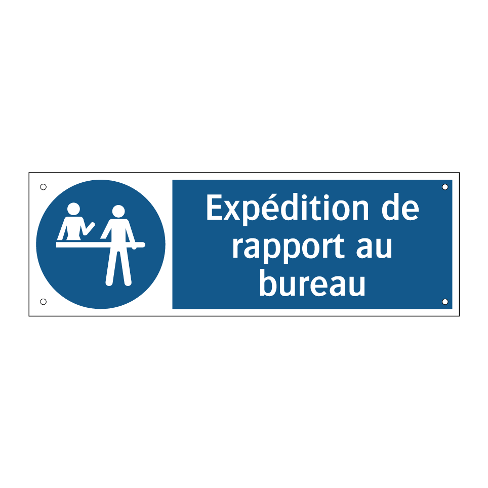 Panneau d'obligation avec le texte : "Expédition de rapport au bureau"