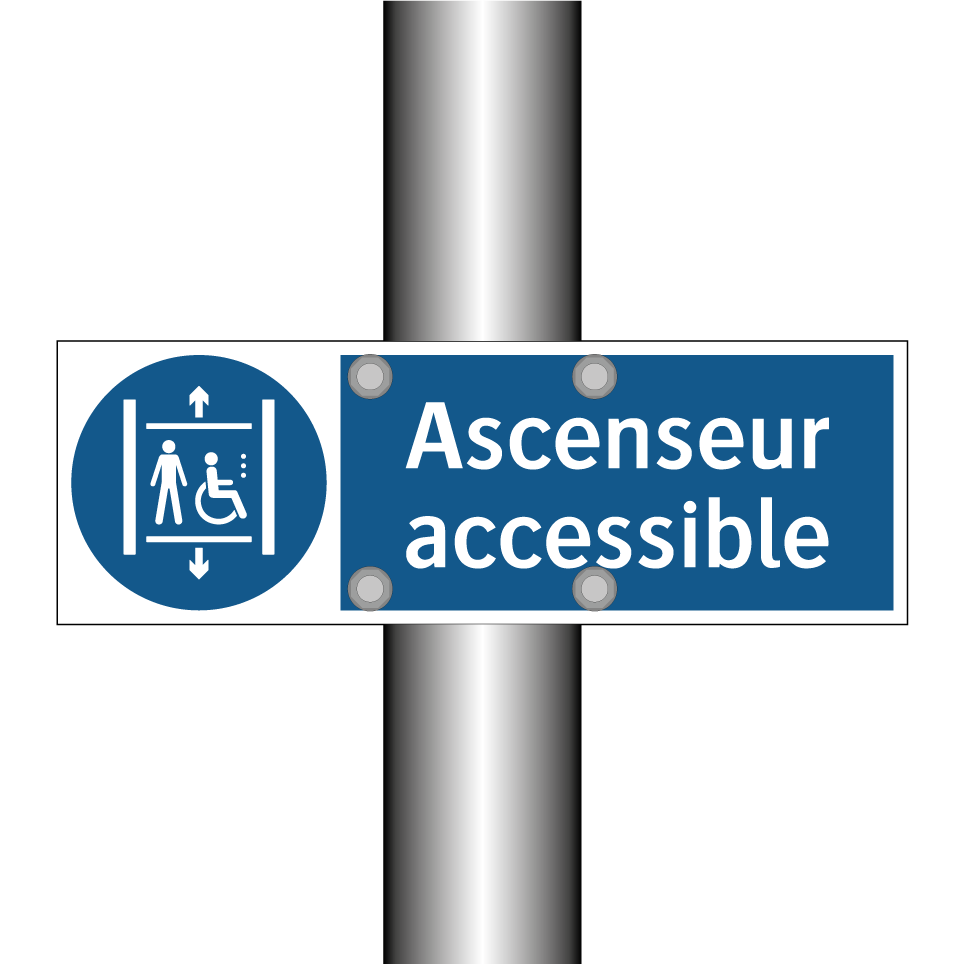 Panneau d'obligation avec le texte : "Ascenseur accessible"