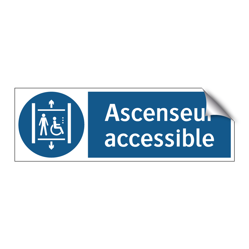 Ce panneau d'obligation est essentiel pour garantir l'accessibilité dans les bâtiments publics et privés. Conçu pour indiquer clairement la disponibilité d'un ascenseur accessible, il joue un rôle crucial dans l'orientation des personnes à mobilité réduite. Ce panneau peut être stratégiquement placé à l'entrée des immeubles, près des escaliers ou dans les halls d'accueil pour assurer une visibilité optimale. En utilisant ce panneau, vous contribuez à créer un environnement inclusif et accueillant pour tous. Sa couleur bleue et son texte blanc avec une icône distincte attirent l'attention et facilitent la compréhension immédiate, rendant l'information accessible à tous les visiteurs.