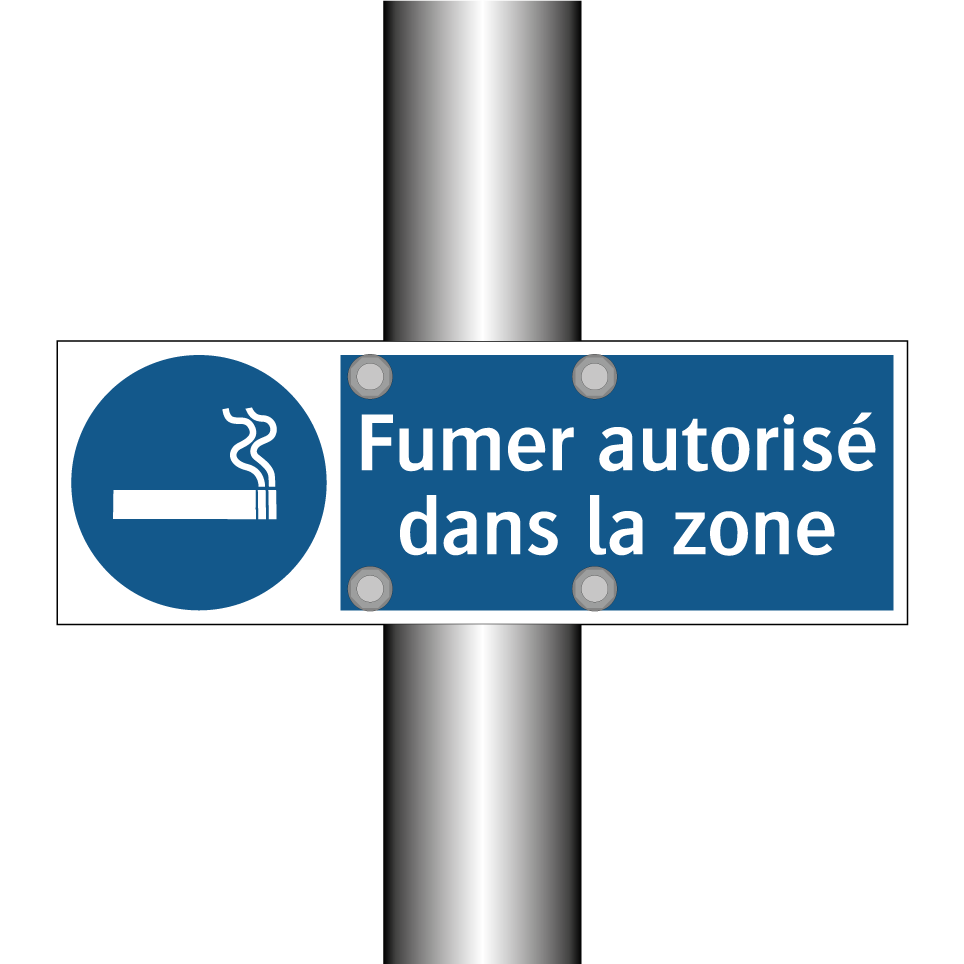 Ce panneau d'obligation est idéal pour indiquer les zones où il est permis de fumer. Grâce à son design clair avec un fond bleu et une écriture blanche, il attire facilement l'attention et communique efficacement le message. Ce type de panneau est parfait pour être placé dans des espaces désignés tels que les terrasses de cafés, les zones fumeurs des entreprises ou les espaces extérieurs des restaurants. En installant ce panneau, vous assurez une communication claire des règles en vigueur, tout en respectant les réglementations locales. C'est un outil essentiel pour maintenir l'ordre et la sécurité dans les lieux publics ou privés.