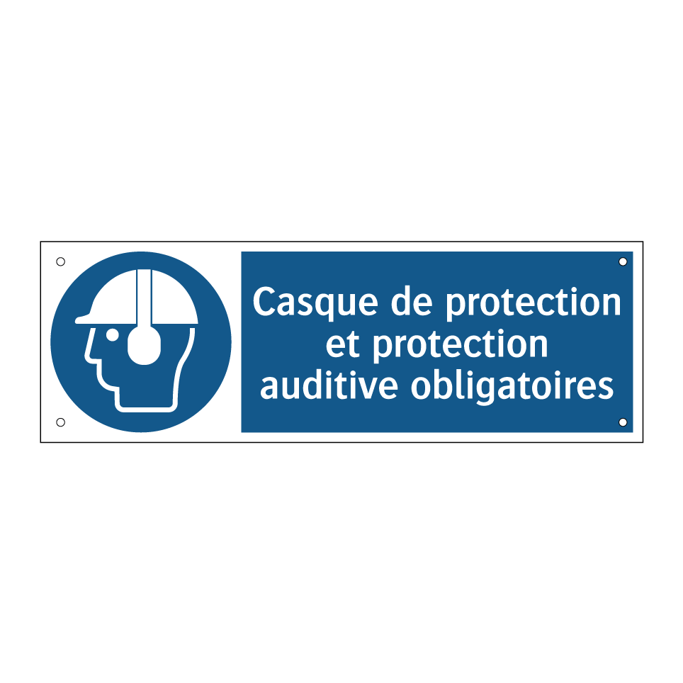 Ce panneau d'obligation est essentiel pour garantir la sécurité sur les chantiers de construction et dans les environnements industriels bruyants. Il rappelle aux travailleurs l'importance de porter un casque de sécurité et une protection auditive pour prévenir les accidents et protéger leur santé. Ce panneau peut être stratégiquement placé à l'entrée des zones de travail, près des machines bruyantes ou dans les vestiaires pour s'assurer que les employés sont conscients des mesures de sécurité requises. En utilisant ce panneau, vous contribuez à créer un environnement de travail plus sûr et conforme aux réglementations en vigueur.