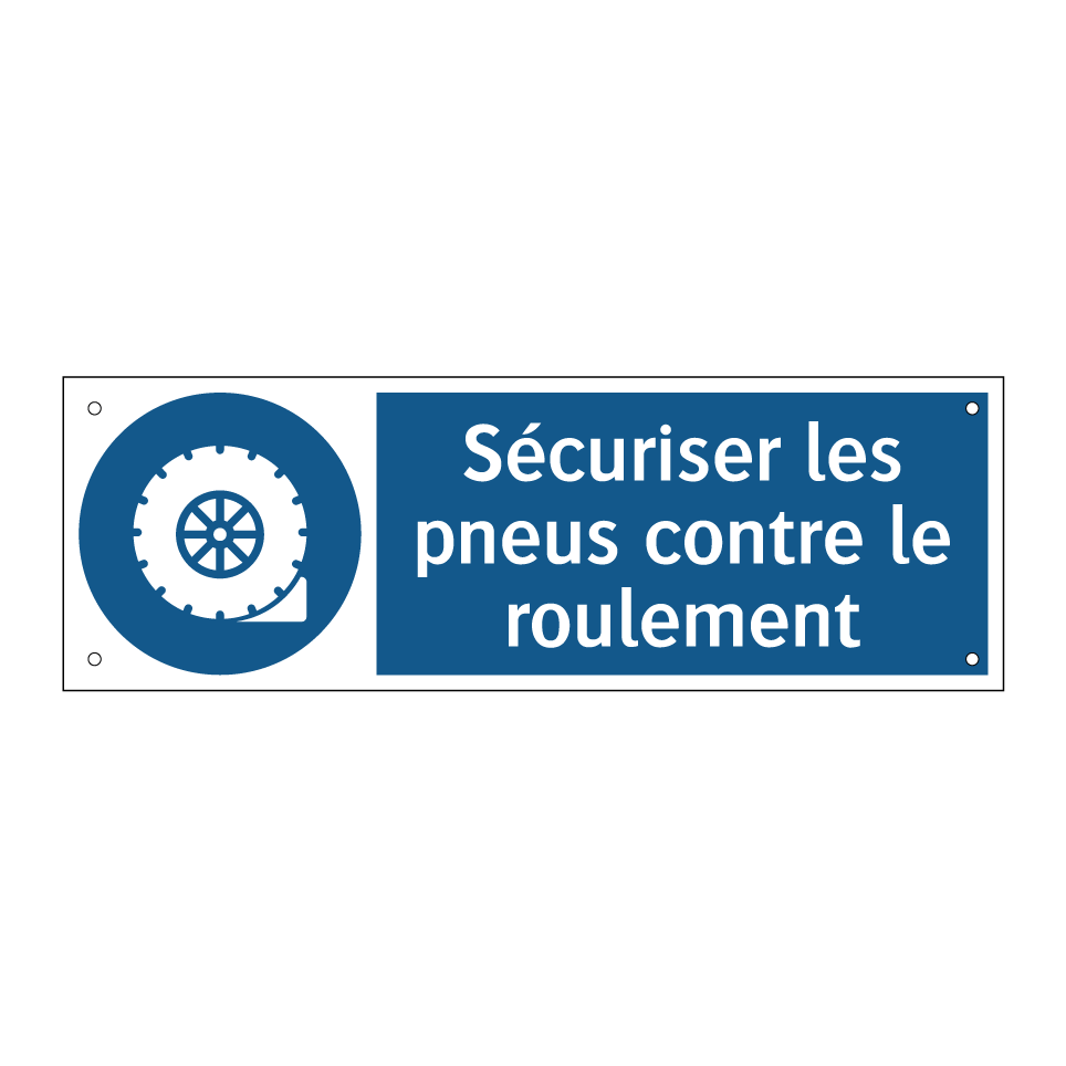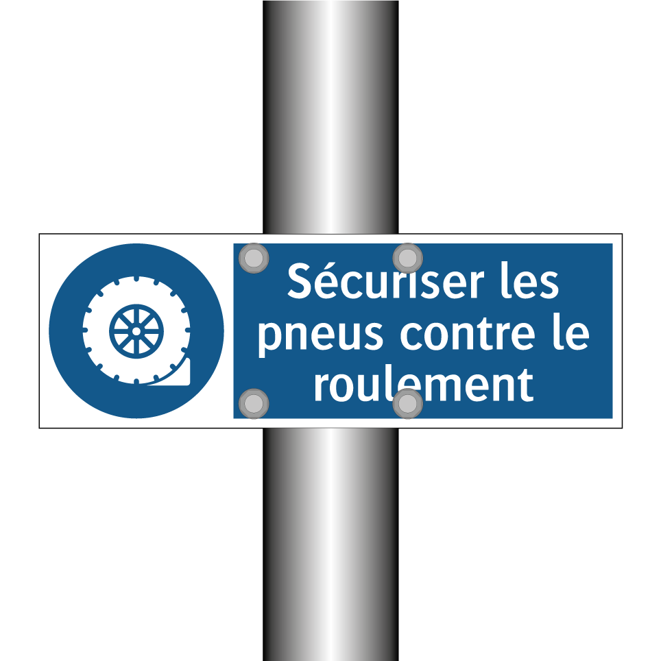 Panneau d'obligation avec le texte : "Sécuriser les pneus contre le roulement"