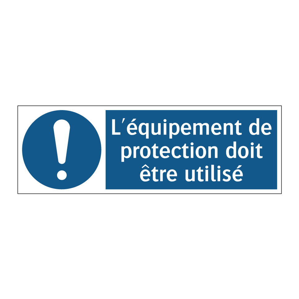 Panneau d'obligation avec le texte : "L'équipement de protection doit être utilisé"