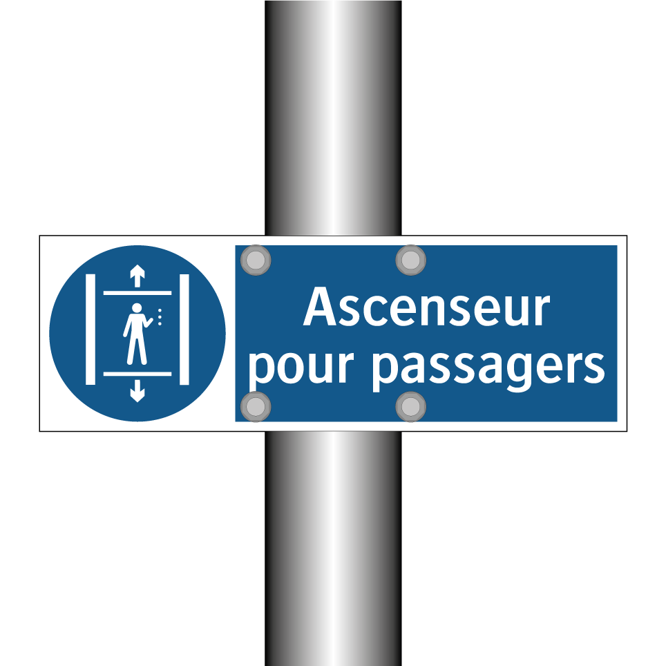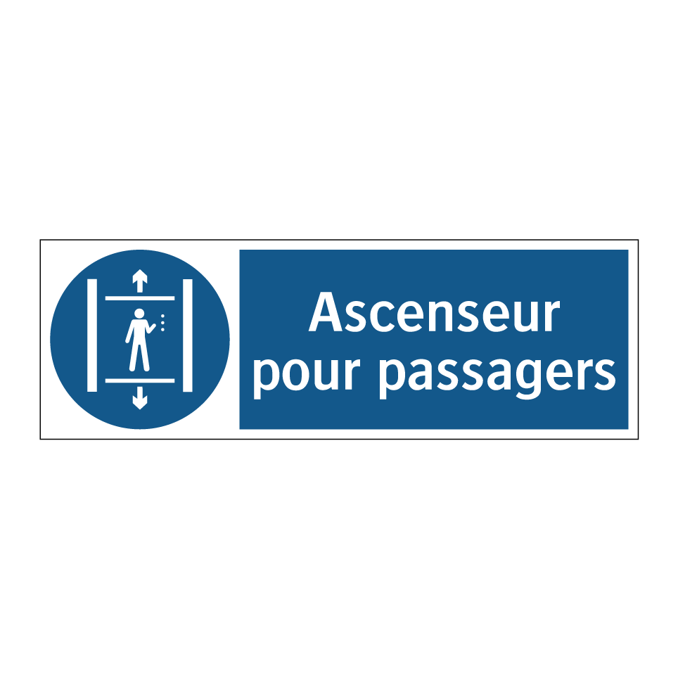 Panneau d'obligation avec le texte : "Ascenseur pour passagers"