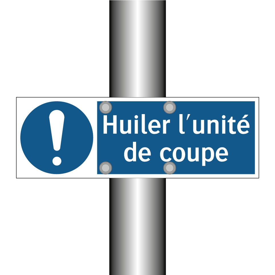 Panneau d'obligation avec le texte : "Huiler l'unité de coupe"