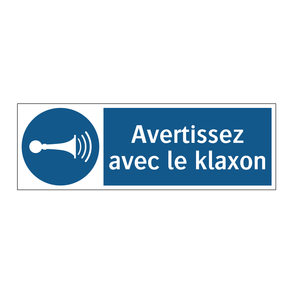 Panneau d'obligation avec le texte : "Avertissez avec le klaxon"