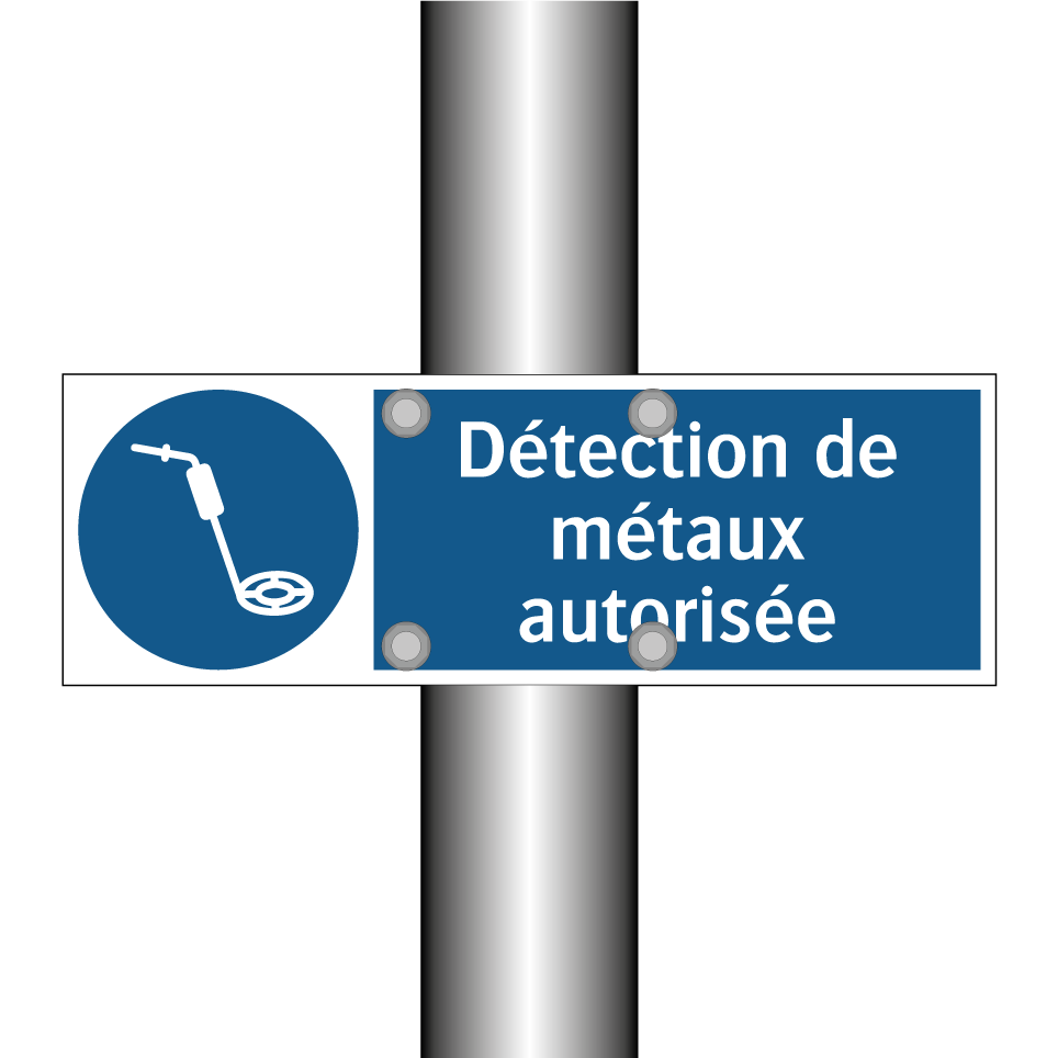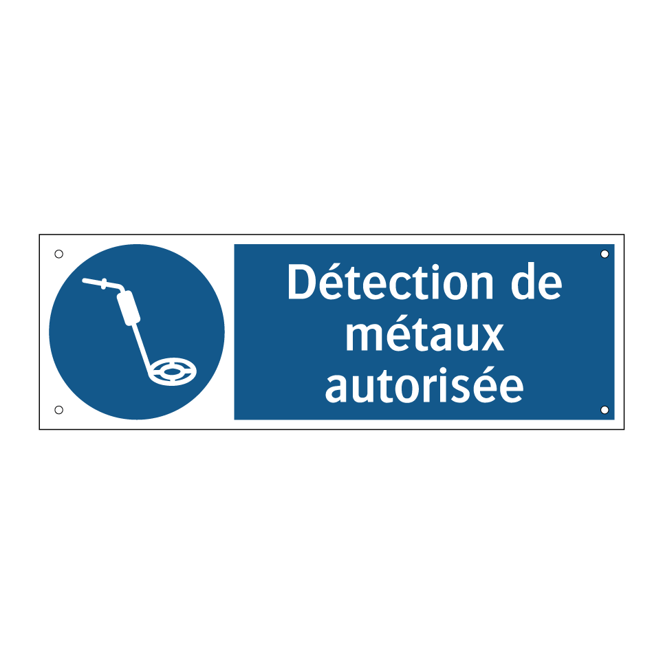 Panneau d'obligation avec le texte : "Détection de métaux autorisée"