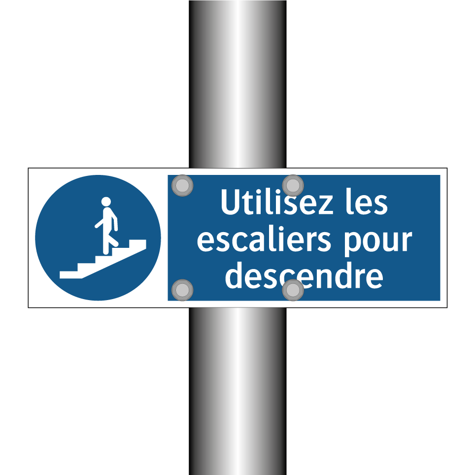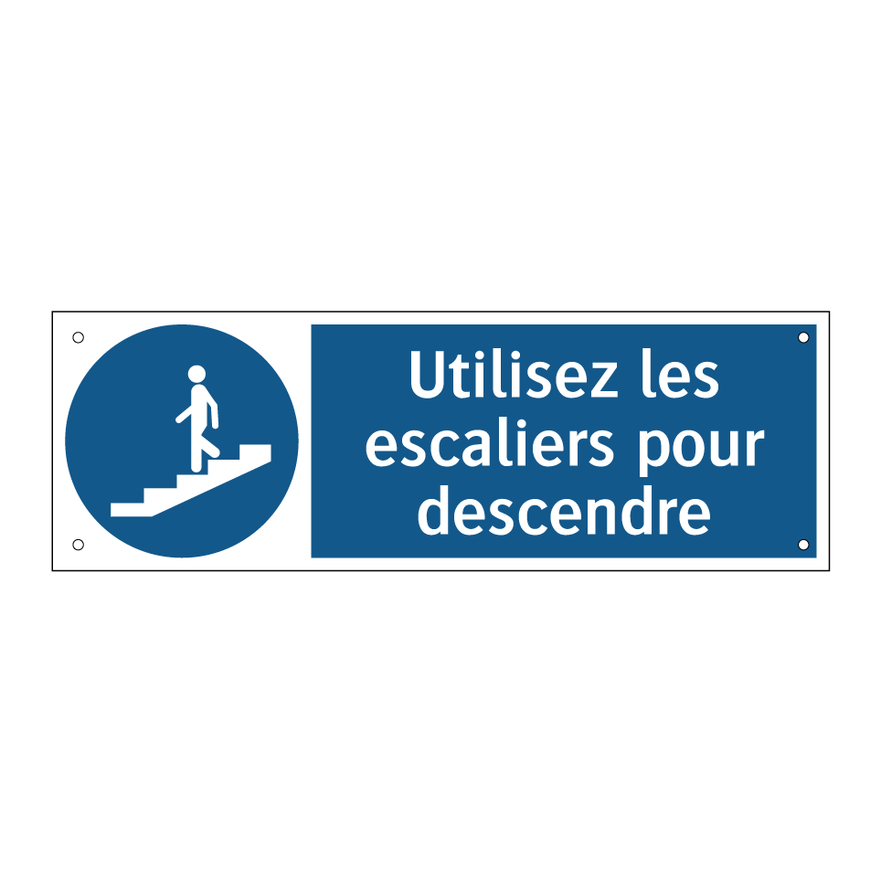Panneau d'obligation avec le texte : "Utilisez les escaliers pour descendre"