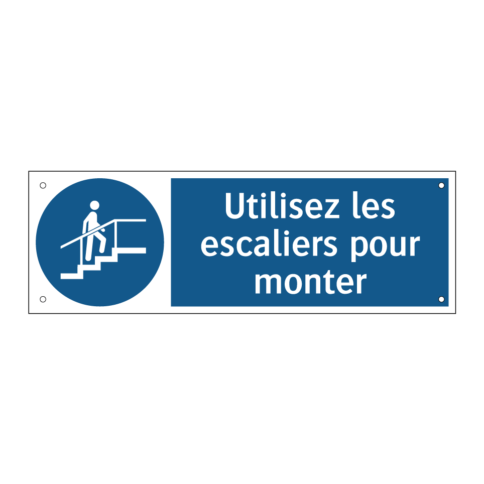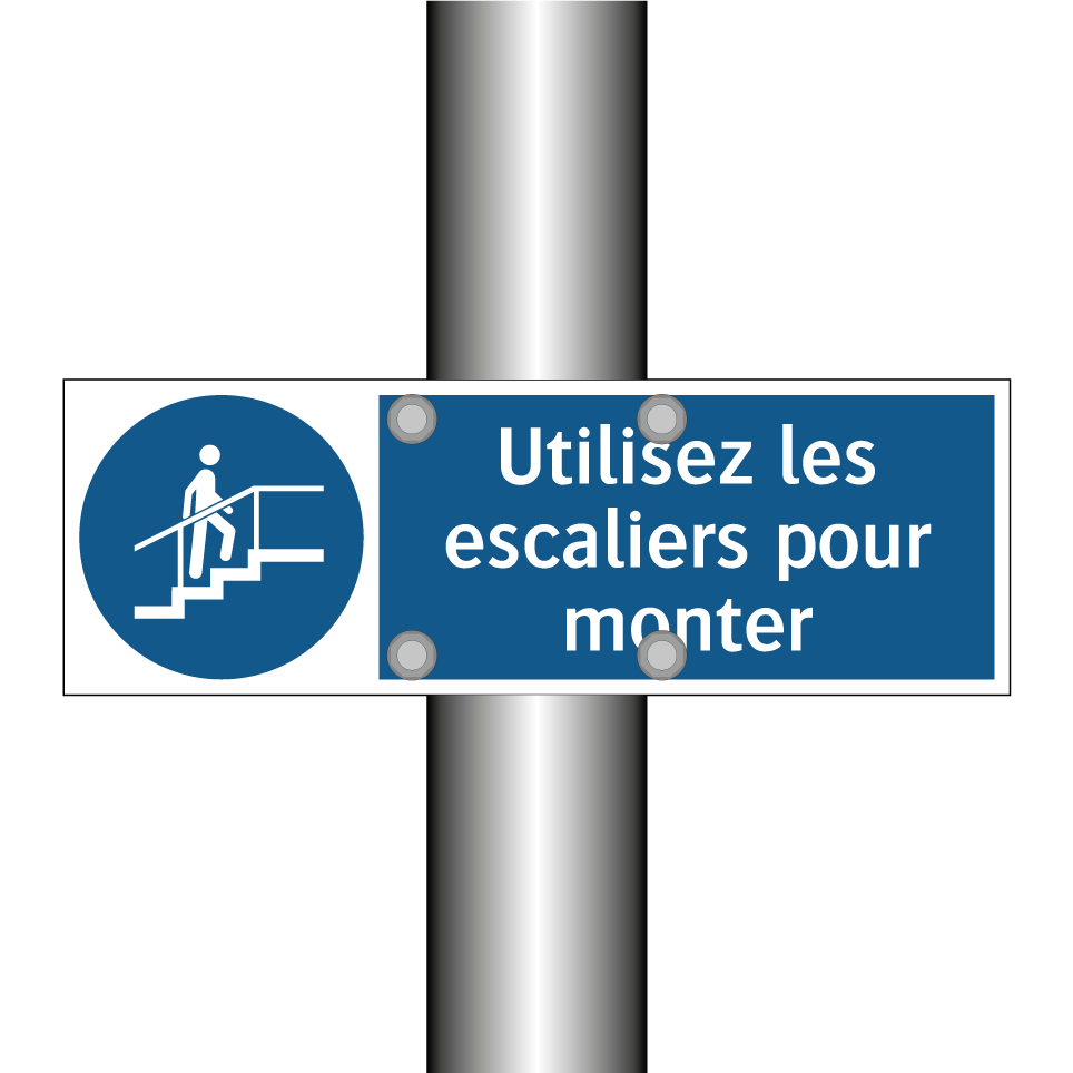 Panneau d'obligation avec le texte : "Utilisez les escaliers pour monter"