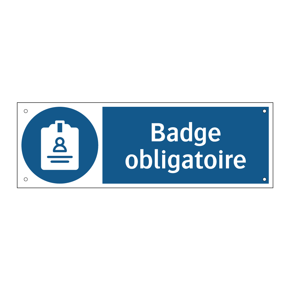 Panneau d'obligation avec le texte : "Badge obligatoire"