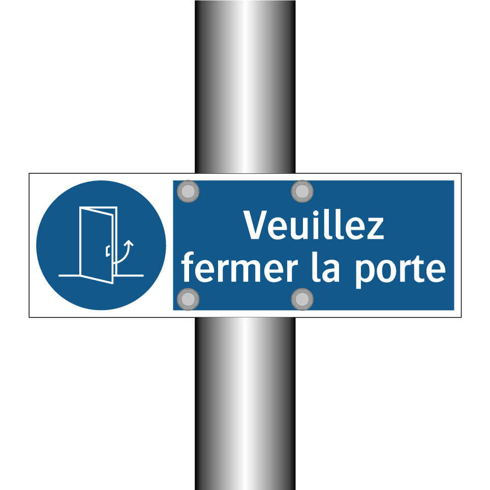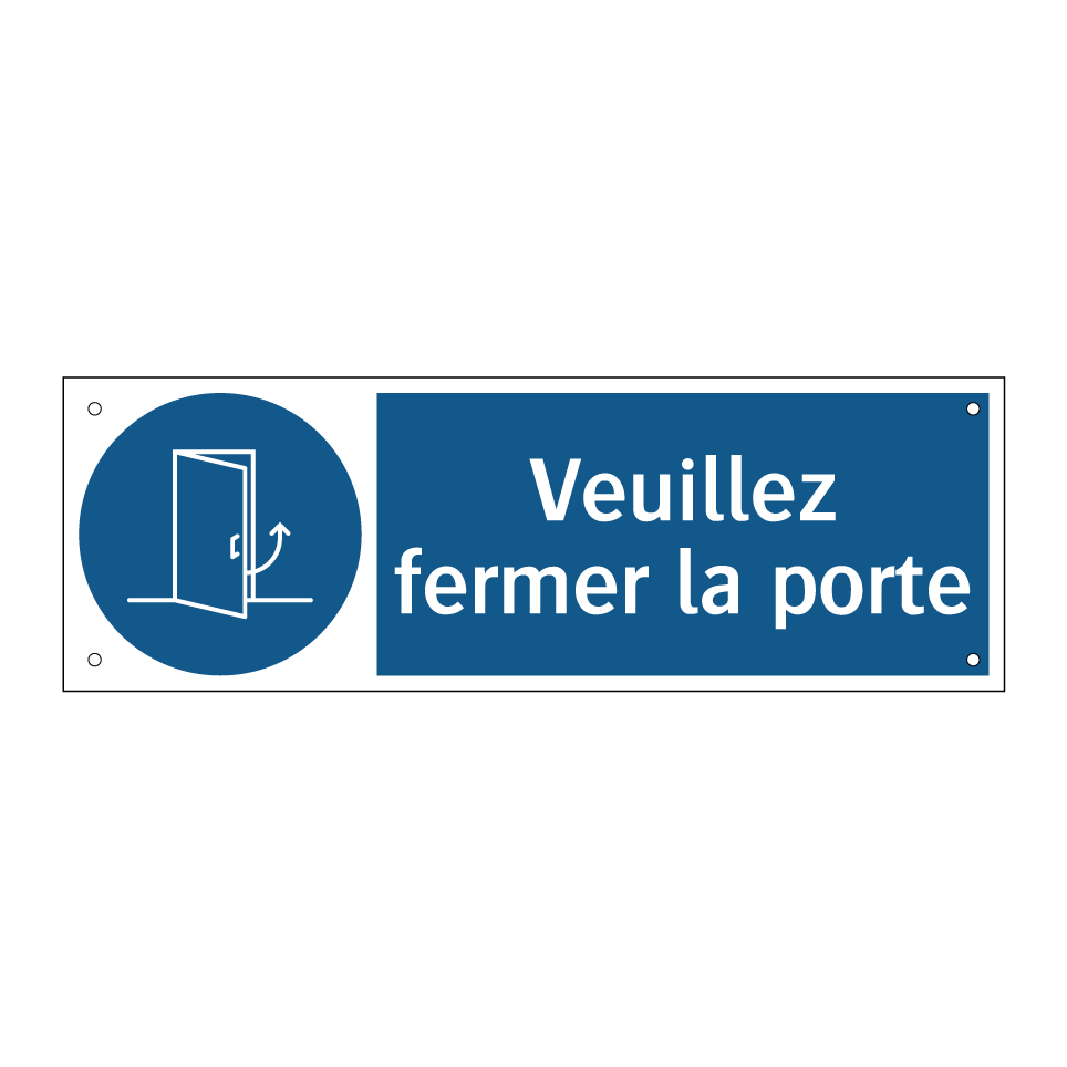 Panneau d'obligation avec le texte : "Veuillez fermer la porte"