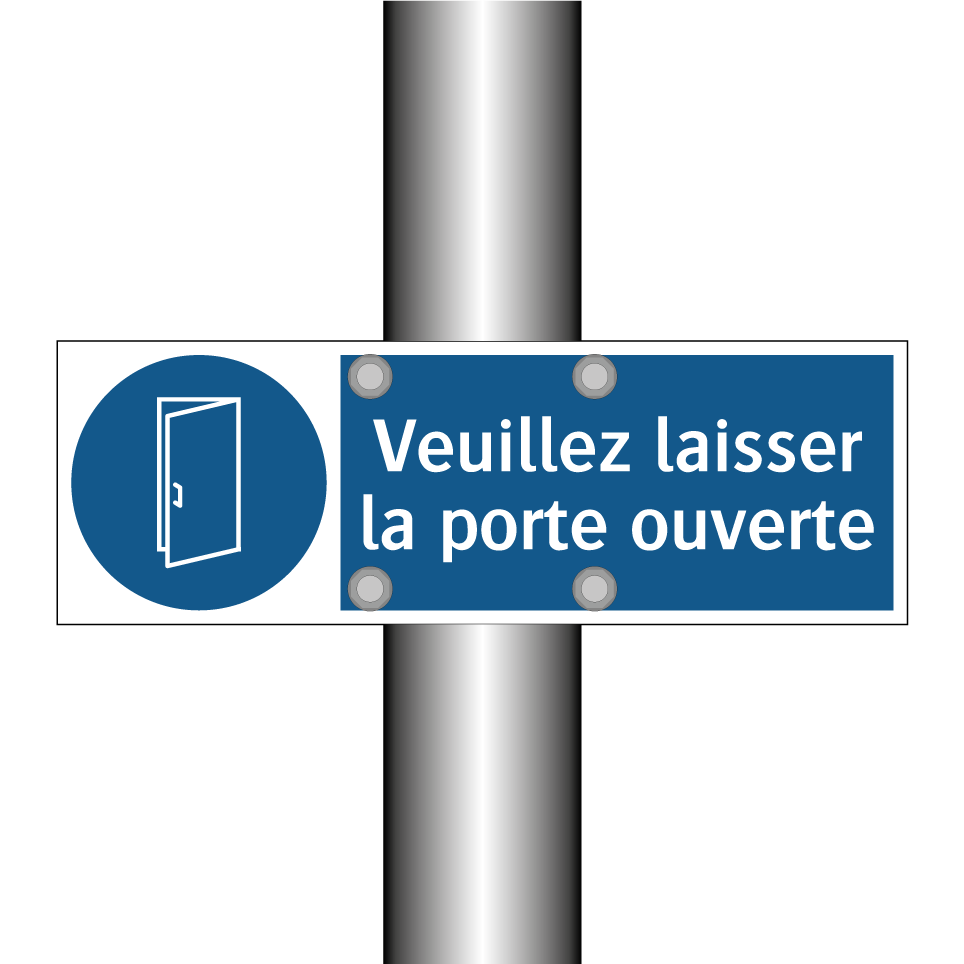 Panneau d'obligation avec le texte : "Veuillez laisser la porte ouverte"