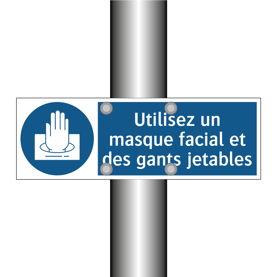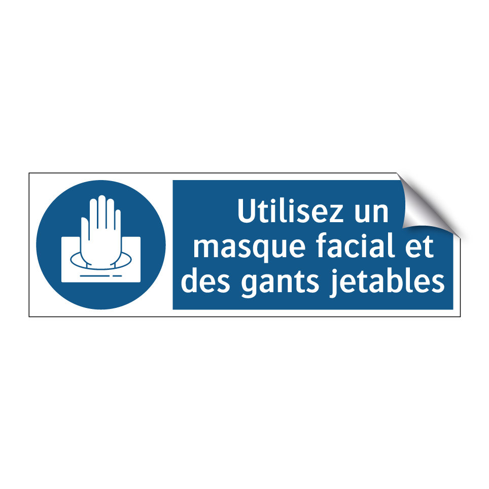 Panneau d'obligation avec le texte : "Utilisez un masque facial et des gants jetables"