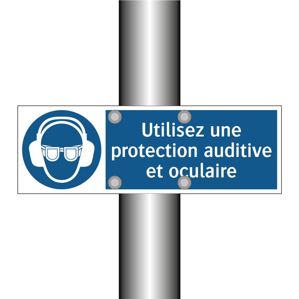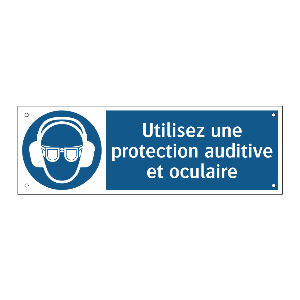 Panneau d'obligation avec le texte : "Utilisez une protection auditive et oculaire"