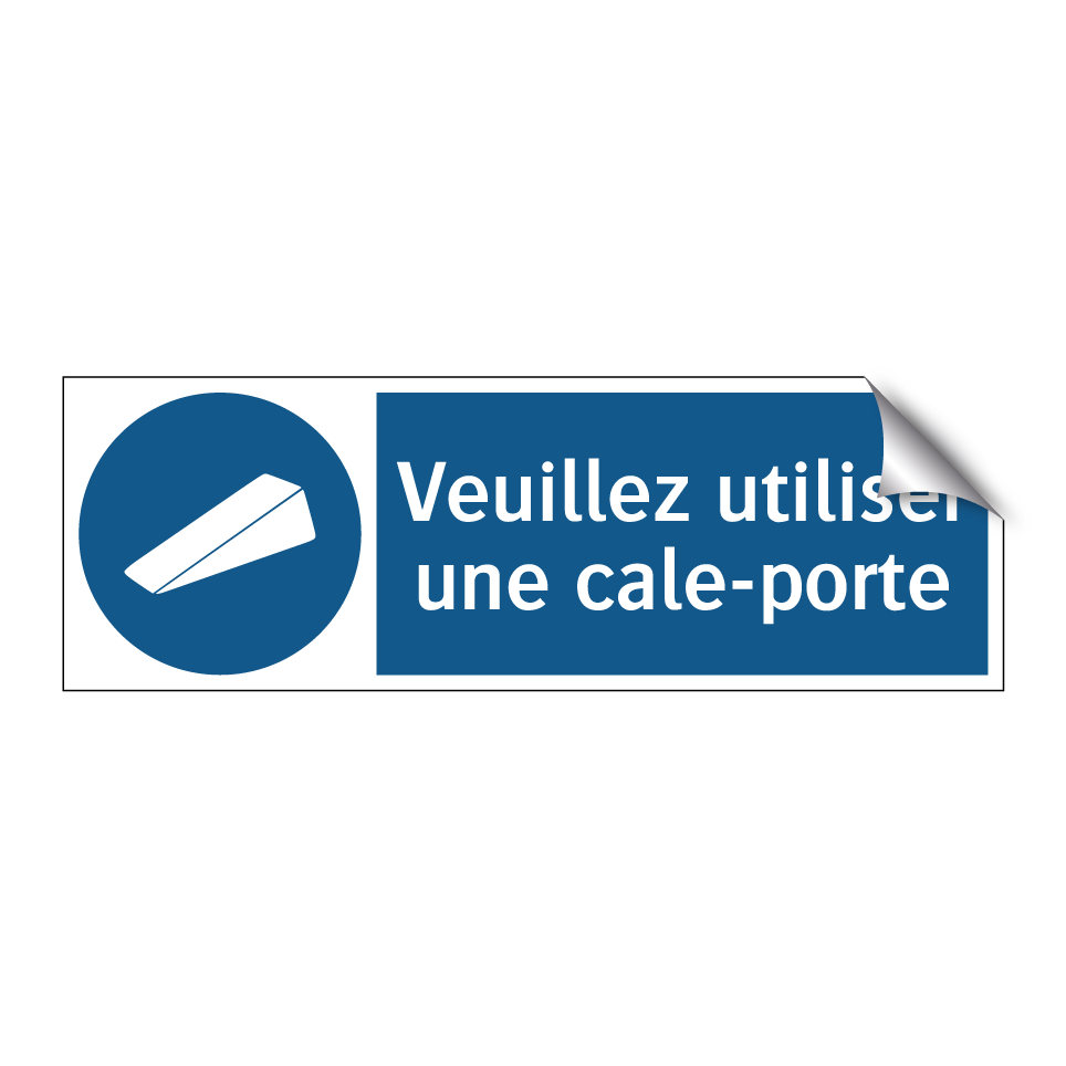 Panneau d'obligation avec le texte : "Veuillez utiliser une cale-porte"