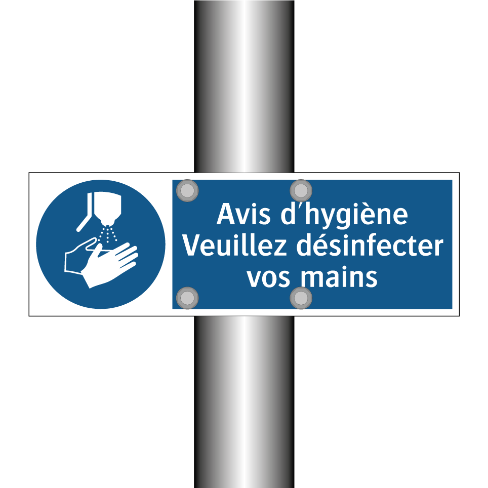 Ce panneau d'obligation est essentiel pour maintenir une bonne hygiène dans les espaces publics. Idéal pour les entrées de bâtiments, les bureaux, les écoles et les centres commerciaux, il rappelle aux visiteurs l'importance de se désinfecter les mains. Grâce à son design clair avec un fond bleu et une écriture blanche, ce panneau attire facilement l'attention et encourage les bonnes pratiques d'hygiène. Placez-le à des endroits stratégiques comme les halls d'entrée, les ascenseurs ou près des distributeurs de désinfectant pour garantir que le message soit bien visible et respecté. Ce panneau est un outil indispensable pour promouvoir la santé et la sécurité dans votre environnement.