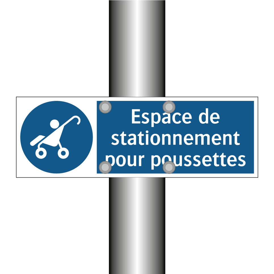 Panneau d'obligation avec le texte : "Espace de stationnement pour poussettes"