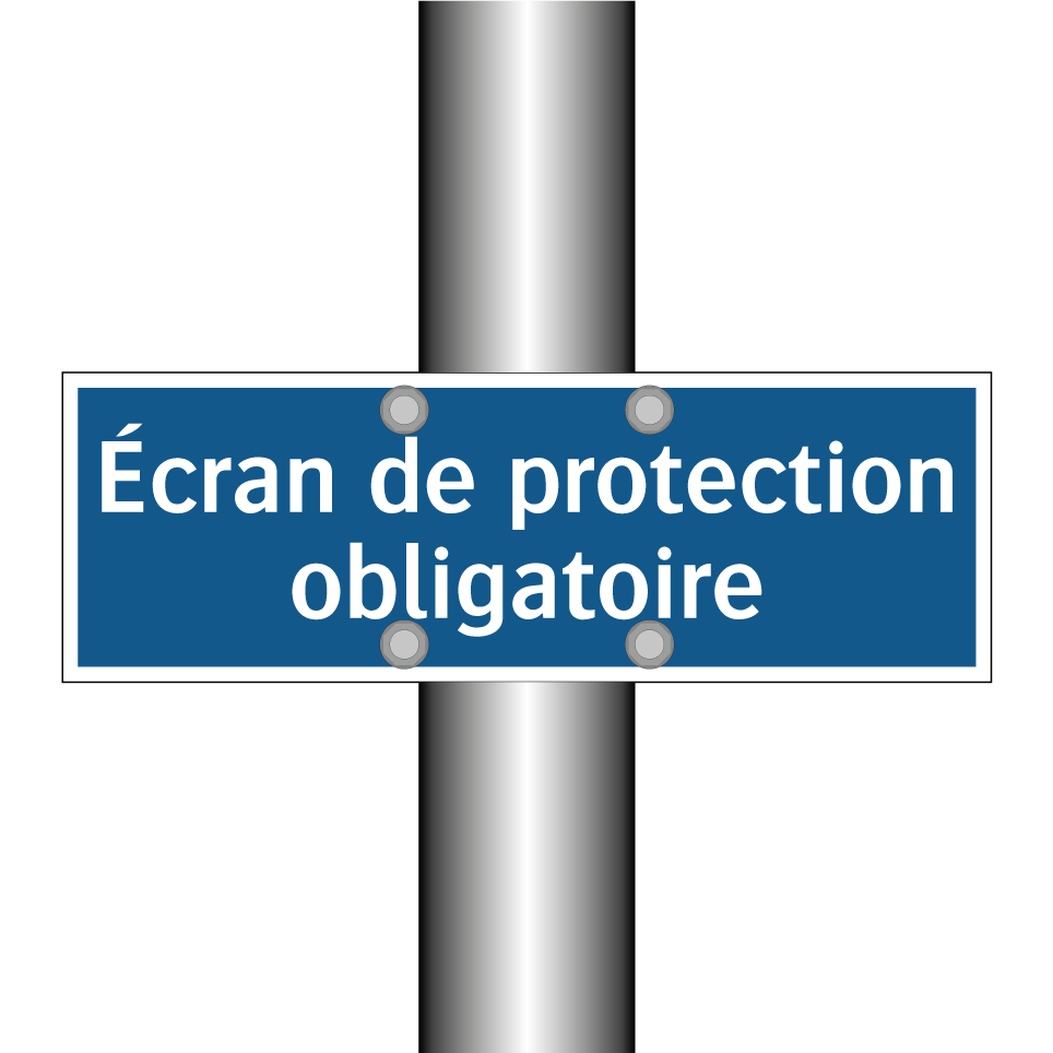 Panneau d'obligation avec le texte : "Écran de protection obligatoire"