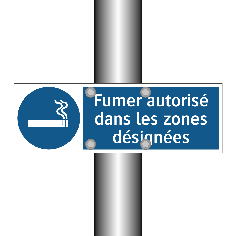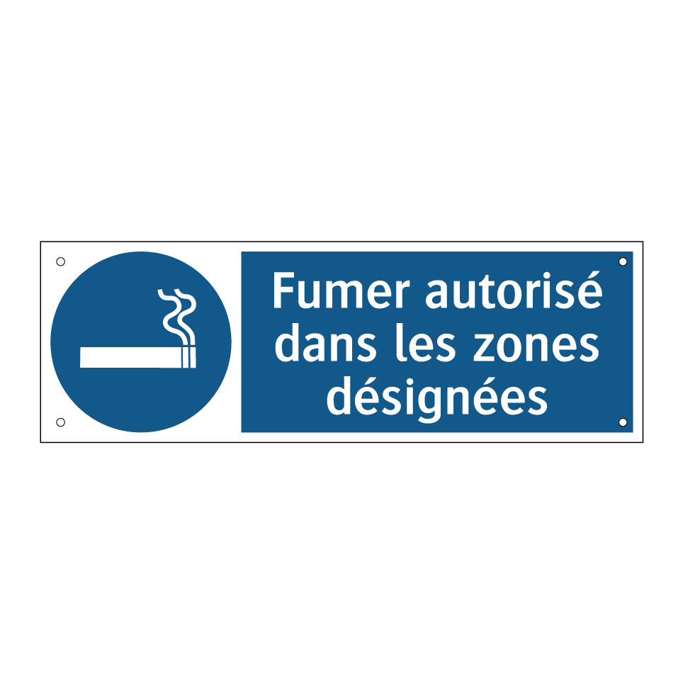 Panneau d'obligation avec le texte : "Fumer autorisé dans les zones désignées"