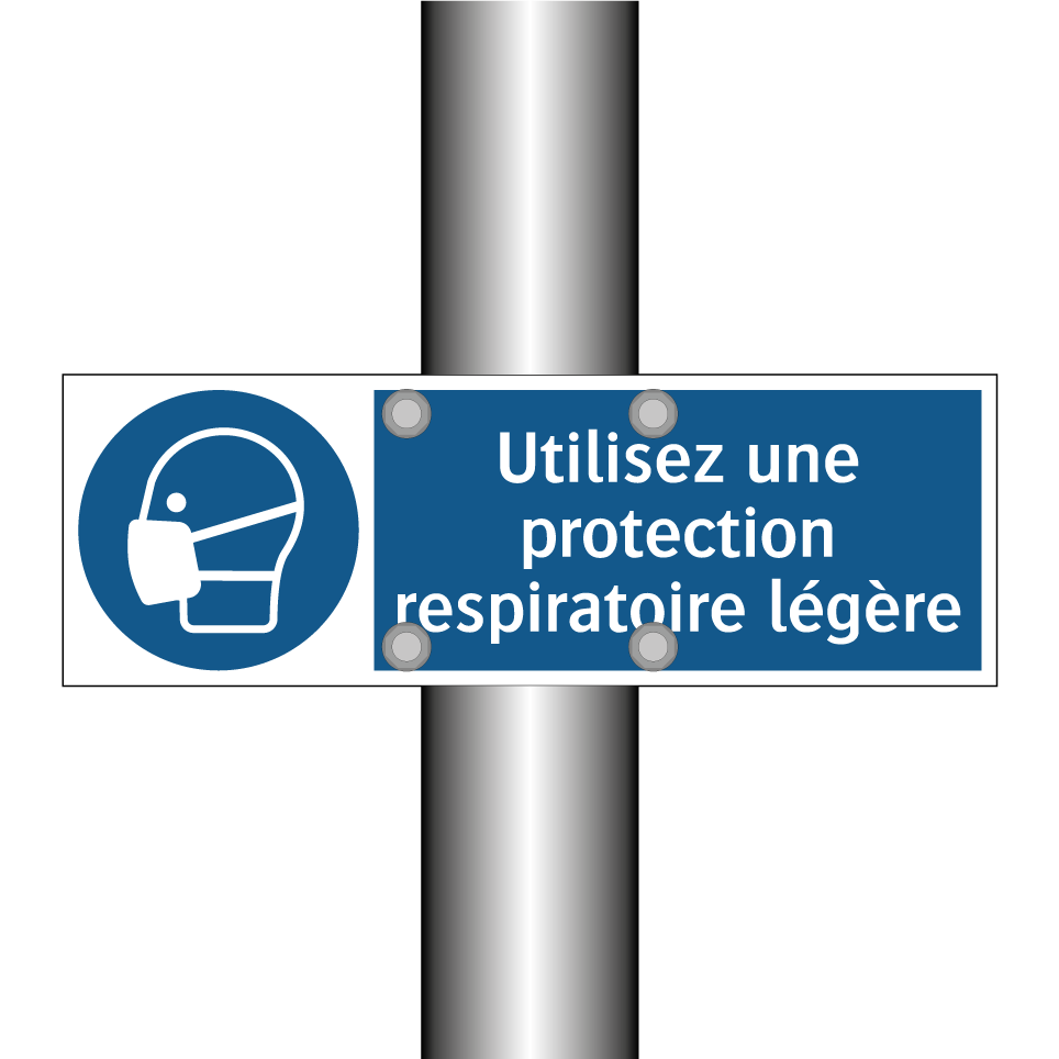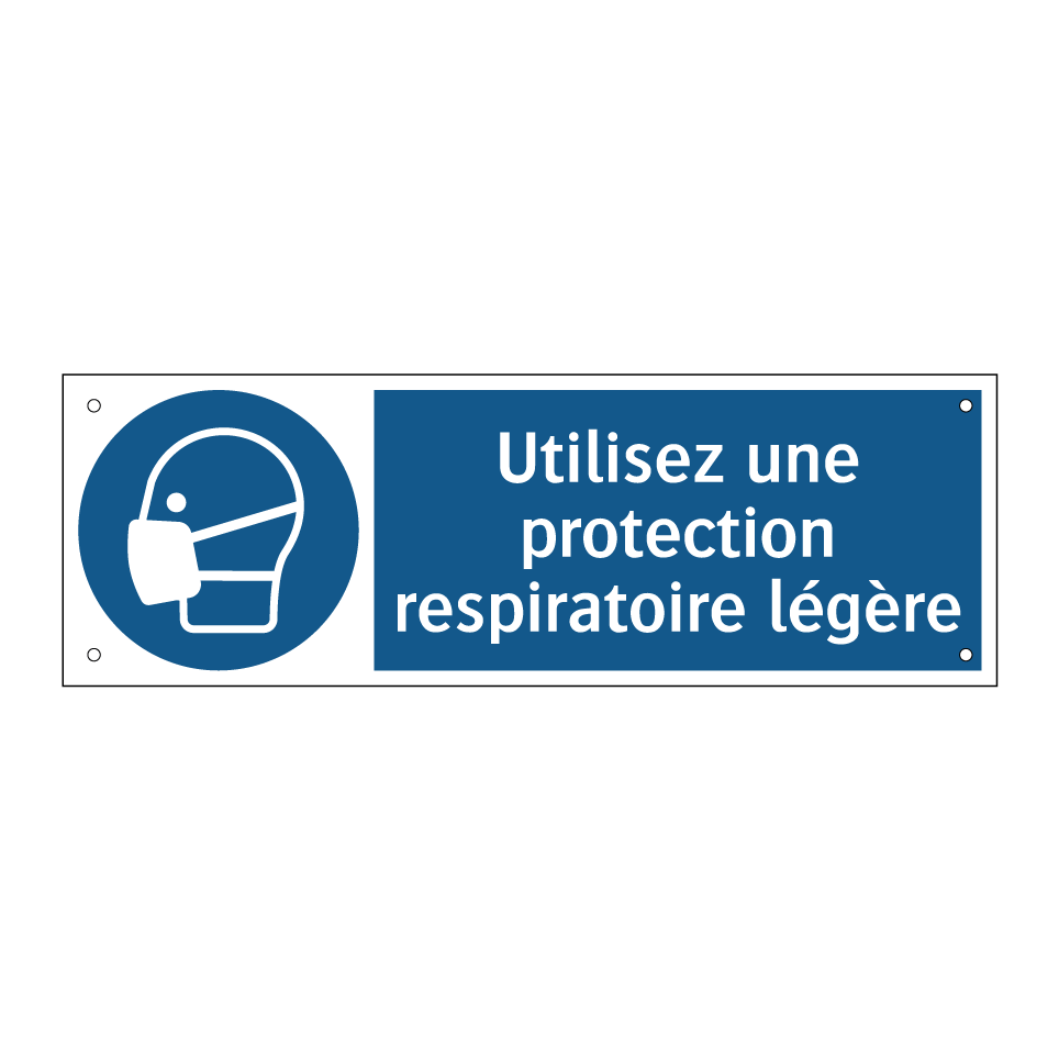 Panneau d'obligation avec le texte : "Utilisez une protection respiratoire légère"
