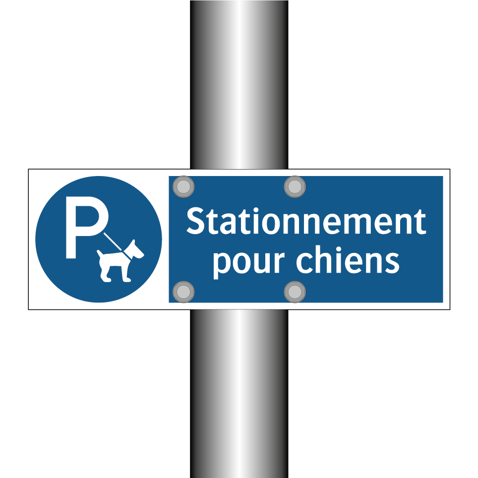 Ce panneau d'obligation est idéal pour indiquer les zones réservées aux chiens, garantissant un espace dédié pour le stationnement de nos amis à quatre pattes. Avec son fond bleu distinctif et son texte blanc clair, il attire facilement l'attention et communique efficacement son message. Ce type de panneau est parfait pour être installé dans les parcs, les espaces publics ou à proximité des commerces accueillant les animaux. En plaçant ce panneau à des endroits stratégiques, vous assurez une meilleure organisation et un respect des règles locales concernant les animaux de compagnie. C'est un outil essentiel pour maintenir l'ordre et la propreté dans les zones fréquentées par les chiens.