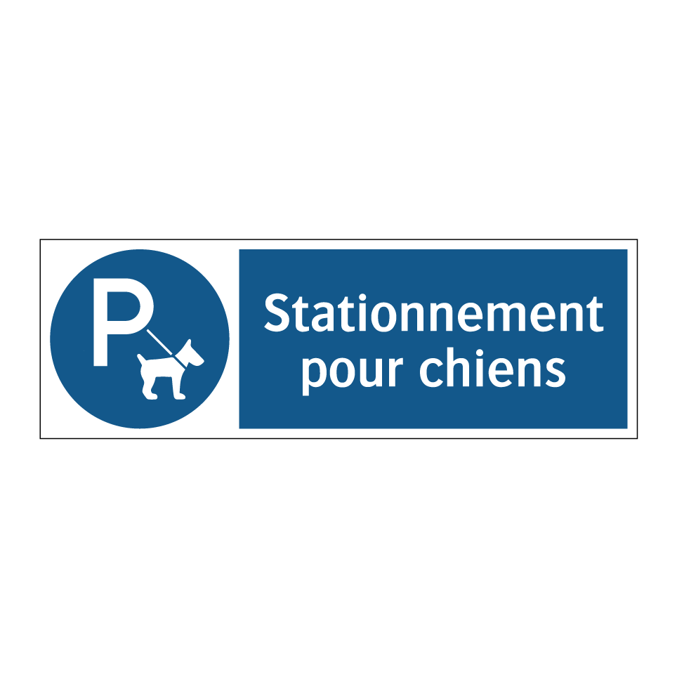 Panneau d'obligation avec le texte : "Stationnement pour chiens"