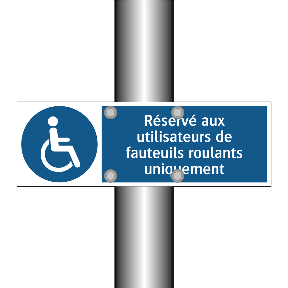 Panneau d'obligation avec le texte : "Réservé aux utilisateurs de fauteuils roulants uniquement"