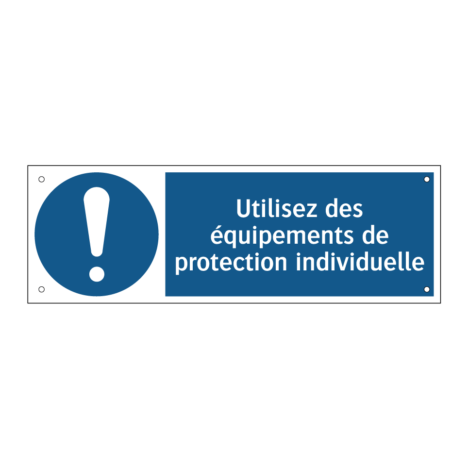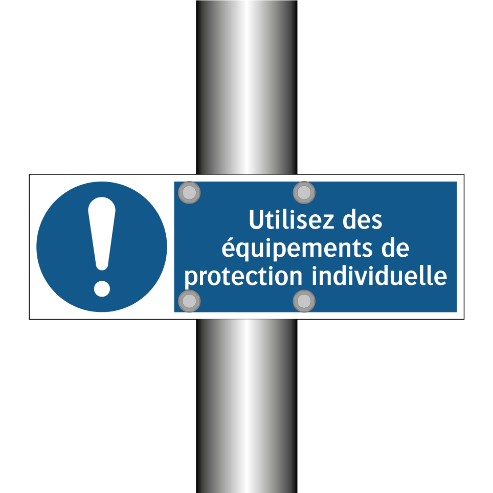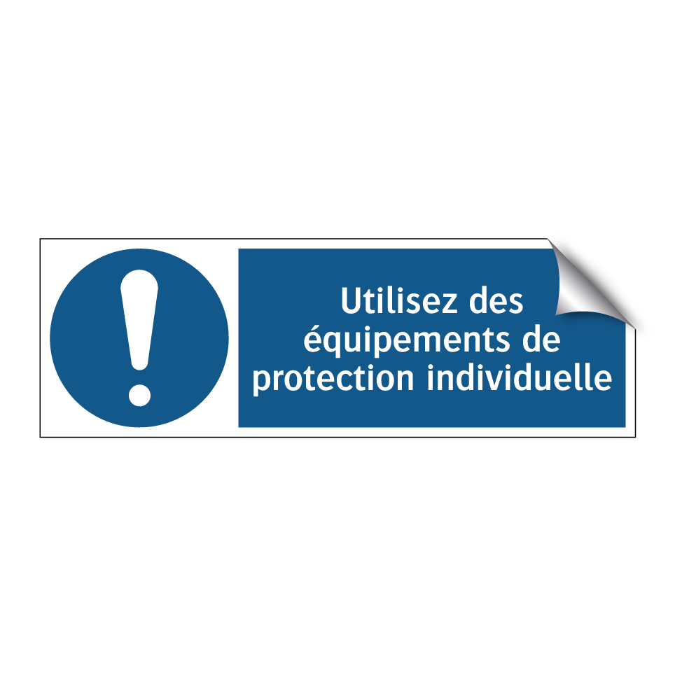 Panneau d'obligation avec le texte : "Utilisez des équipements de protection individuelle"