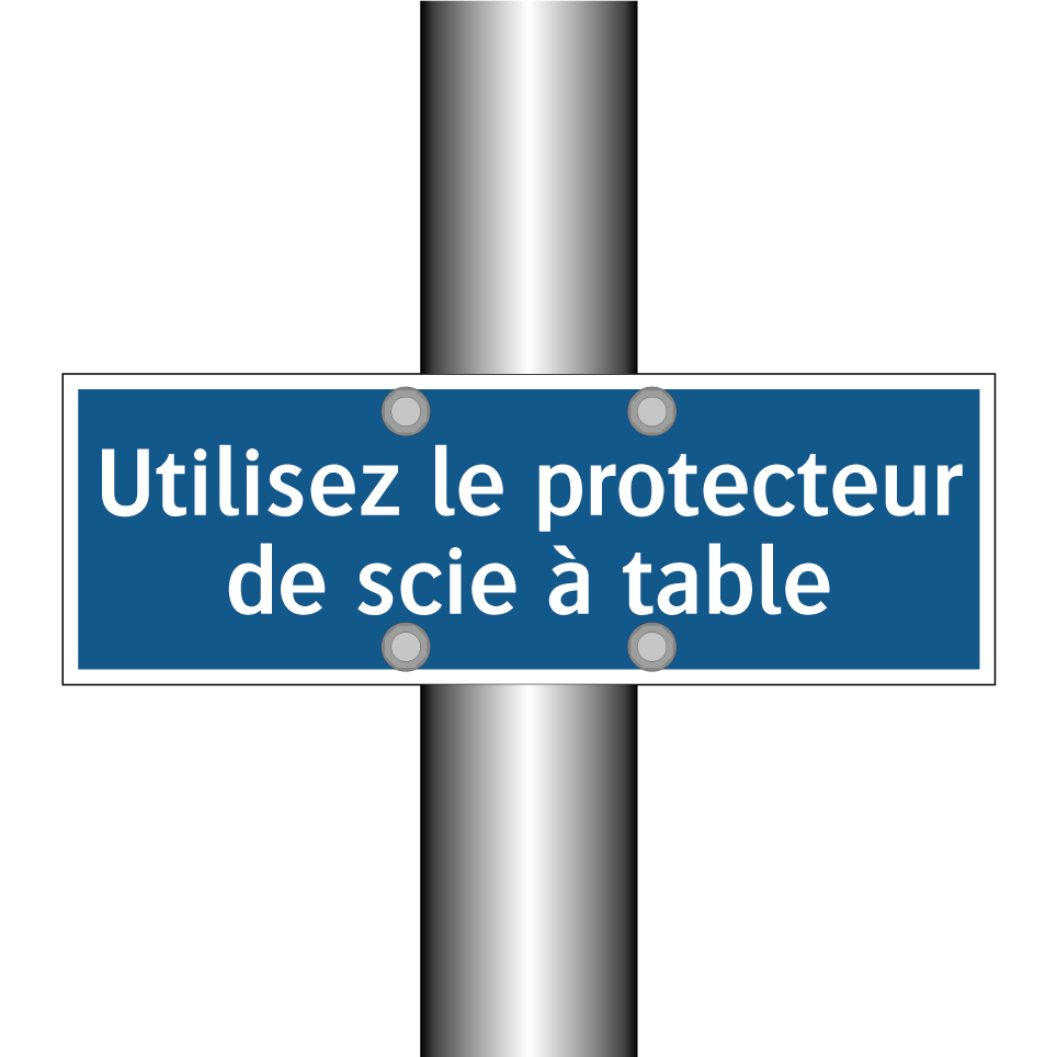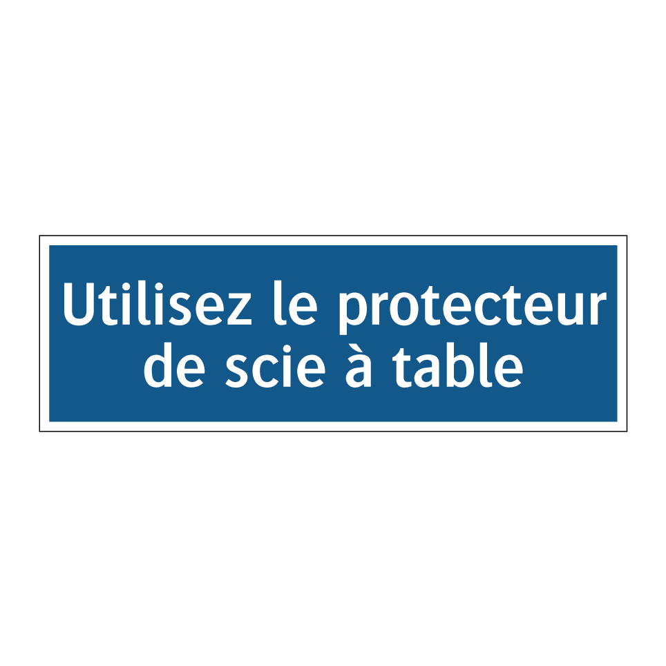 Panneau d'obligation avec le texte : "Utilisez le protecteur de scie à table"