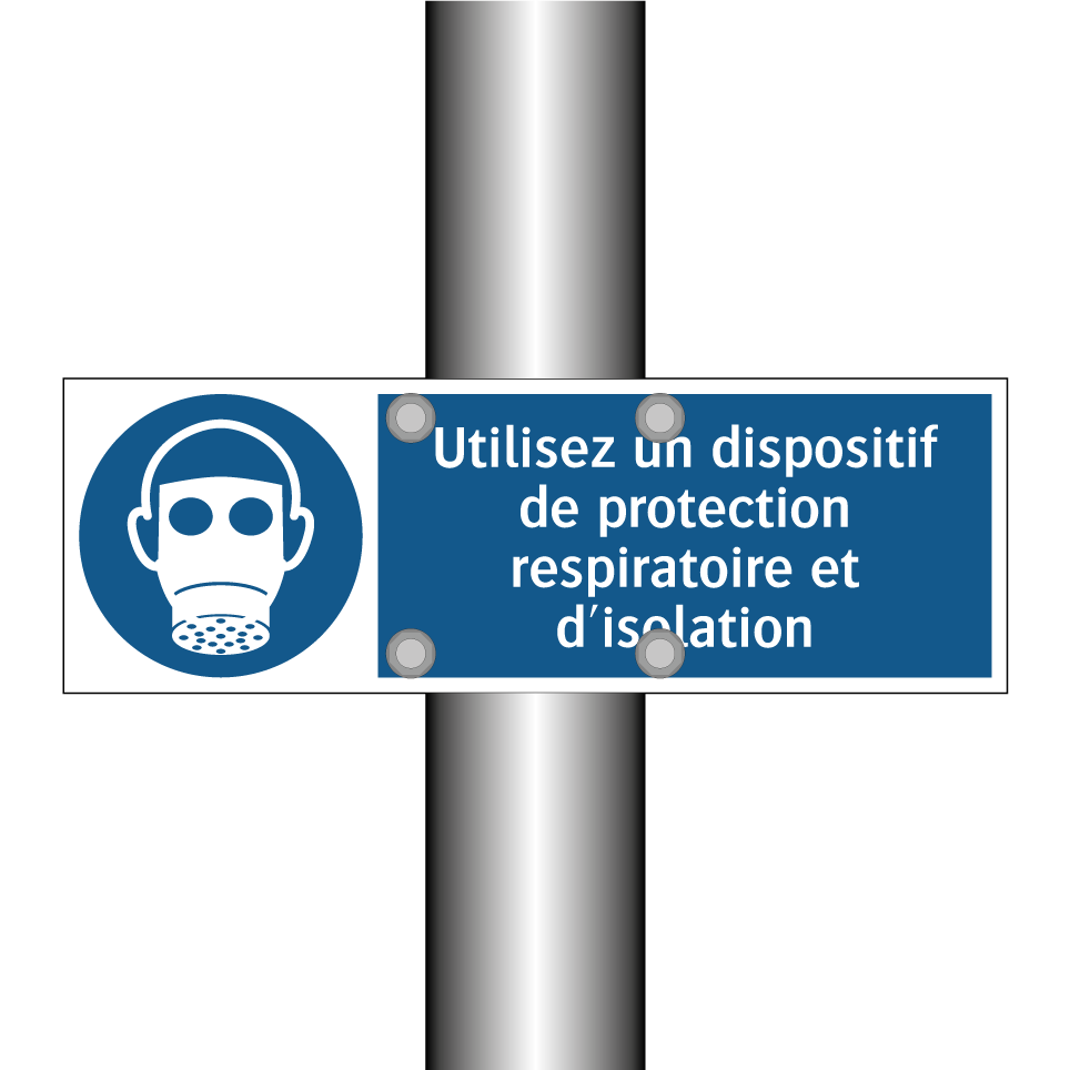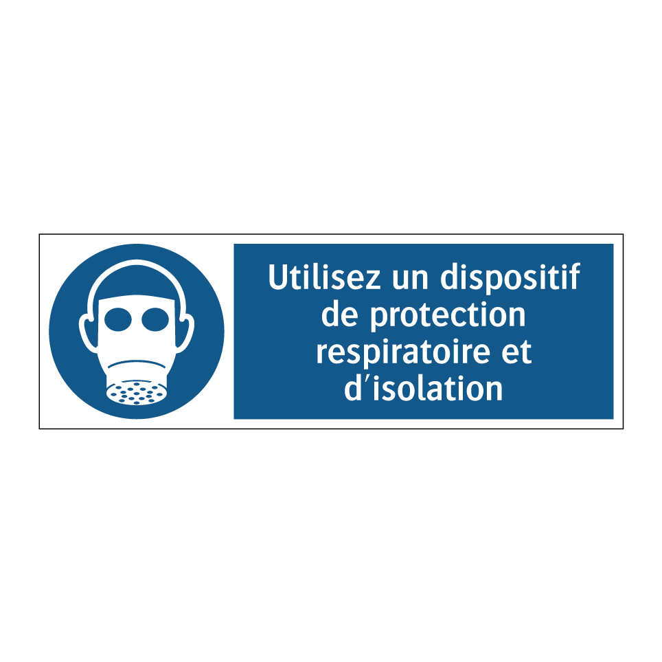 Panneau d'obligation avec le texte : "Utilisez un dispositif de protection respiratoire et d'isolation"
