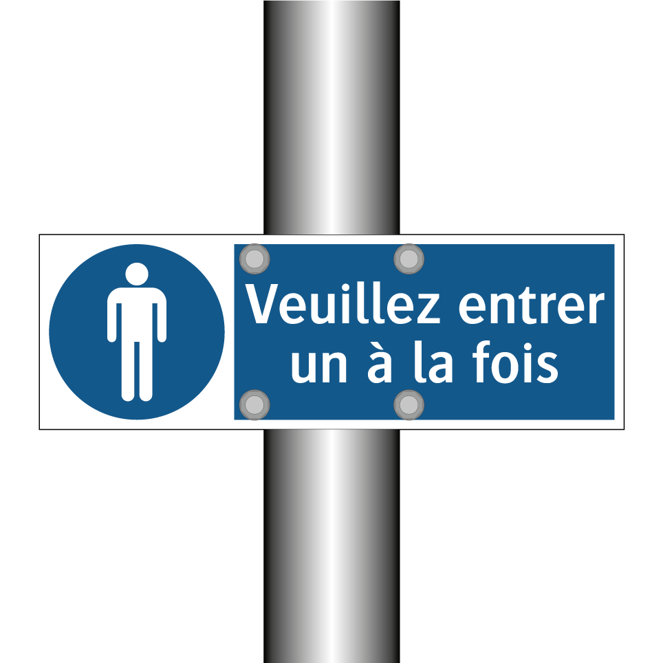 Panneau d'obligation avec le texte : "Veuillez entrer un à la fois"