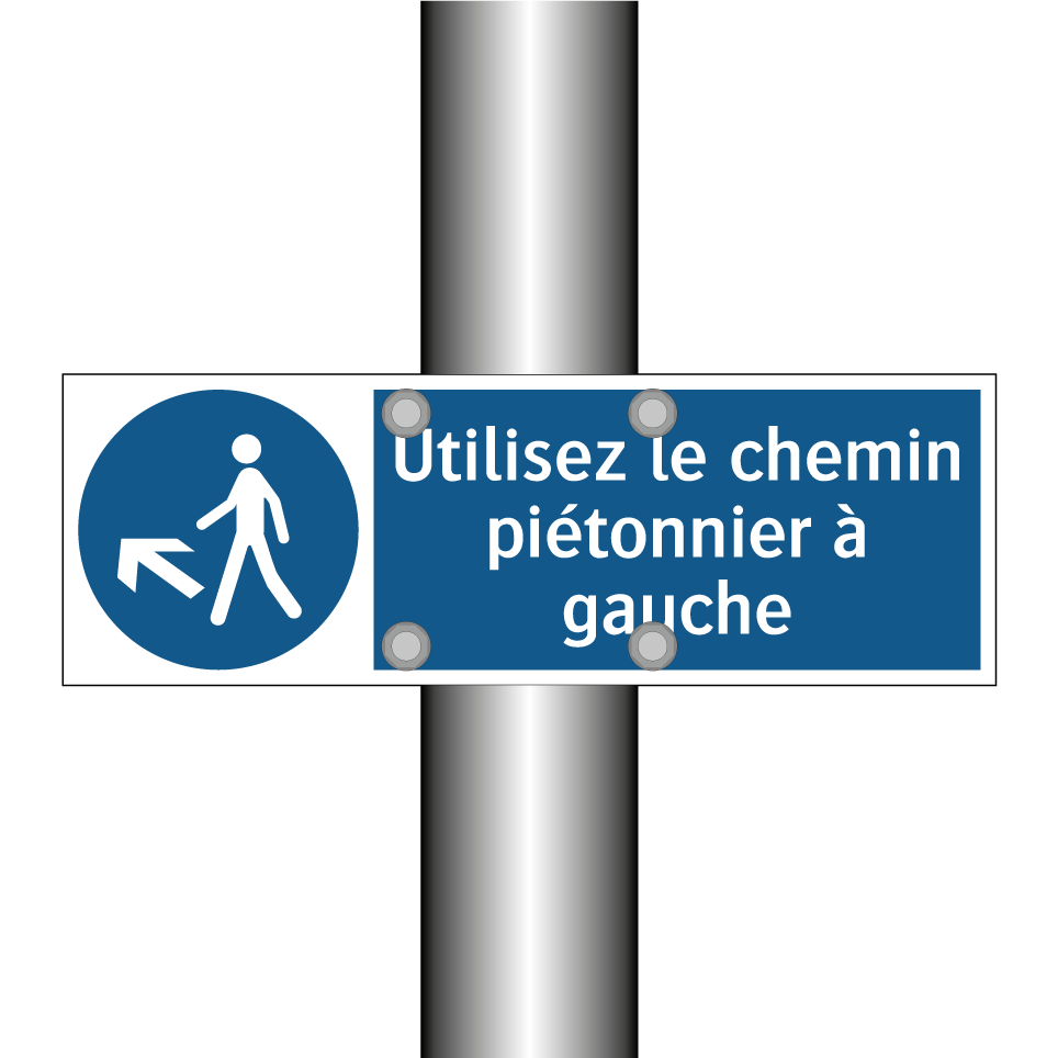 Ce panneau d'obligation est essentiel pour garantir la sécurité des piétons en dirigeant le flux de marche vers la gauche. Idéal pour les zones à fort trafic piétonnier, il peut être installé dans des environnements tels que les centres commerciaux, les parcs, ou les campus universitaires. En indiquant clairement le chemin à suivre, ce panneau contribue à éviter les collisions et à maintenir un flux ordonné. Sa couleur bleue et son texte blanc assurent une visibilité optimale, même de loin. Utilisez ce panneau pour renforcer la sécurité et l'organisation dans les espaces publics ou privés où la direction des piétons est cruciale.
