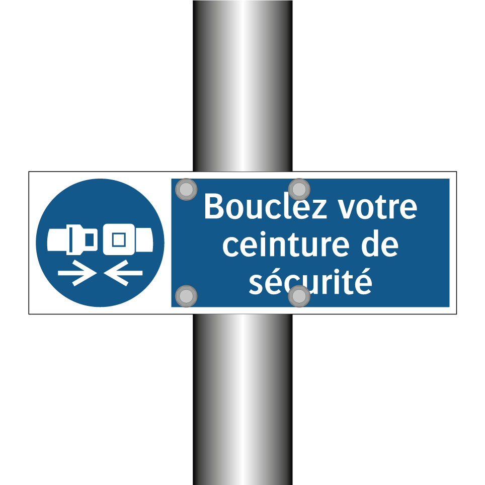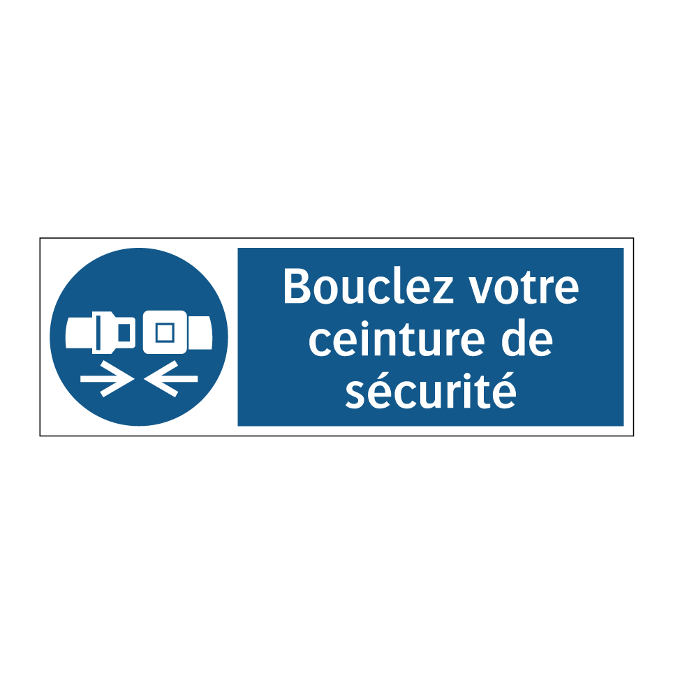 Panneau d'obligation avec le texte : "Bouclez votre ceinture de sécurité"