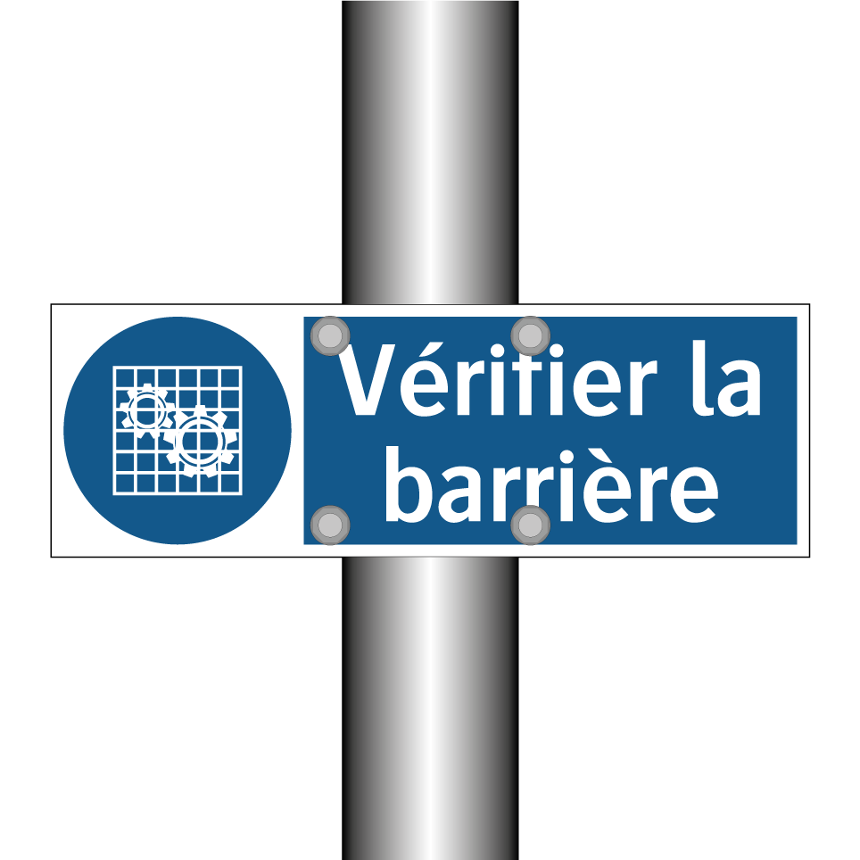 Panneau d'obligation avec le texte : "Vérifier la barrière"