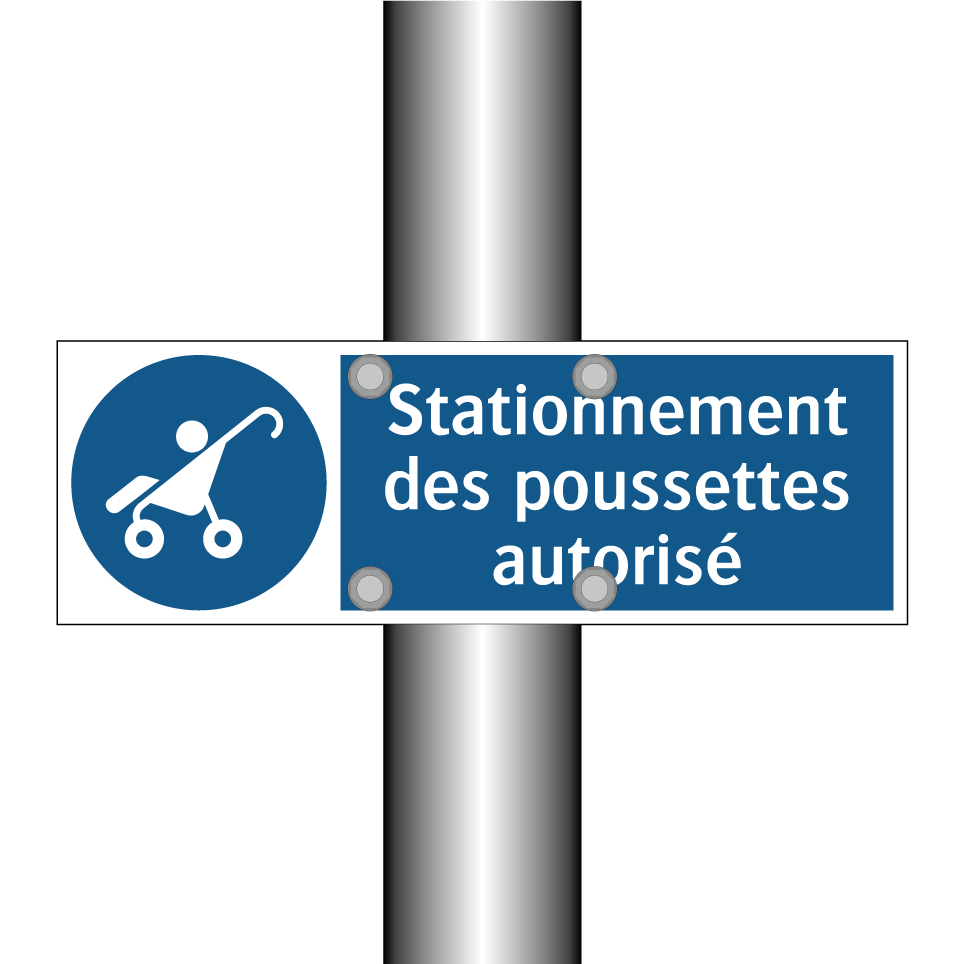 Ce panneau d'obligation est idéal pour indiquer les zones où le stationnement des poussettes est permis. Grâce à son design clair avec un fond bleu et une écriture blanche, il attire facilement l'attention des passants. Ce type de signalisation est particulièrement utile dans les centres commerciaux, les parcs, ou à l'entrée des bâtiments publics, où il est essentiel de guider les parents avec des enfants en bas âge. En installant ce panneau, vous facilitez l'organisation des espaces et assurez une meilleure gestion des flux de personnes. C'est un outil indispensable pour garantir un environnement ordonné et accueillant.
