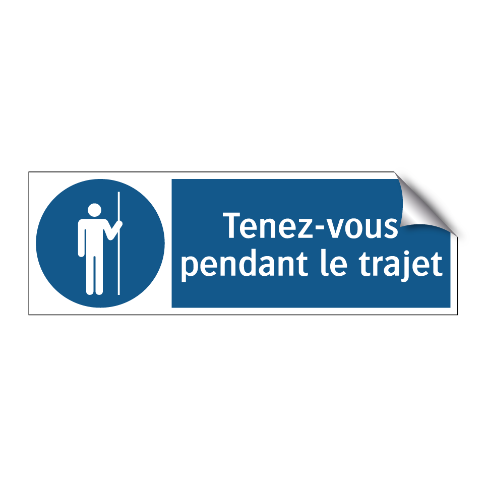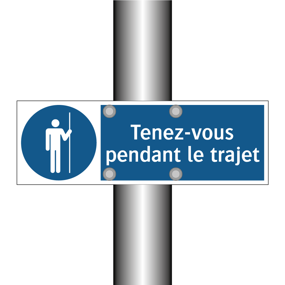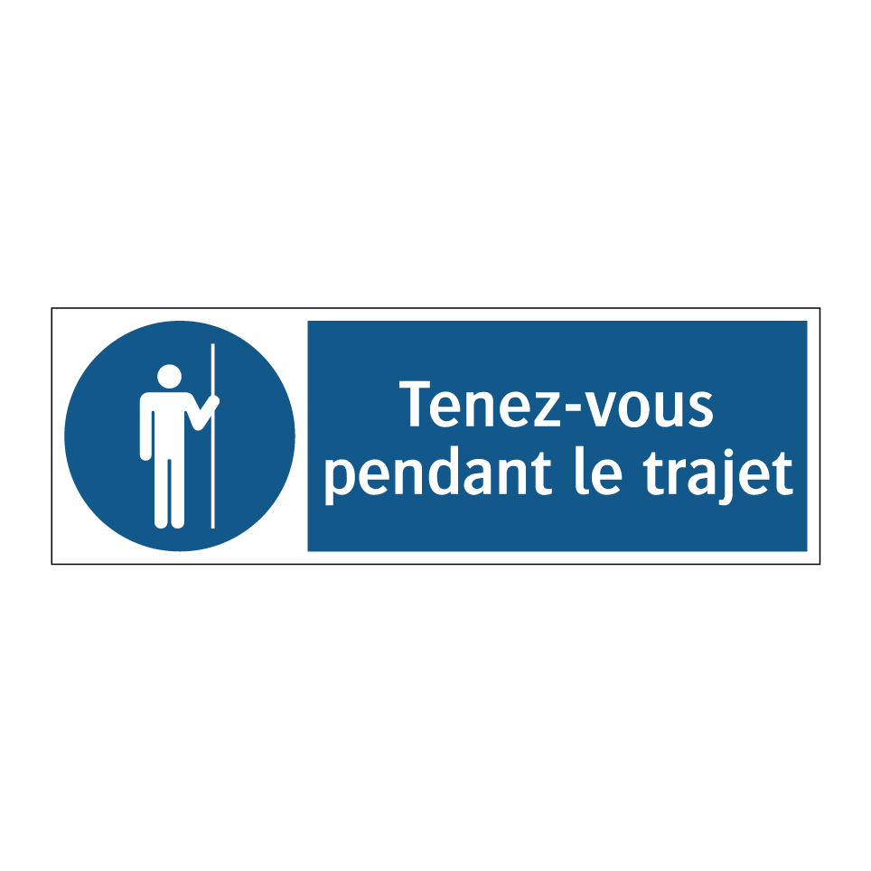 Panneau d'obligation avec le texte : "Tenez-vous pendant le trajet"