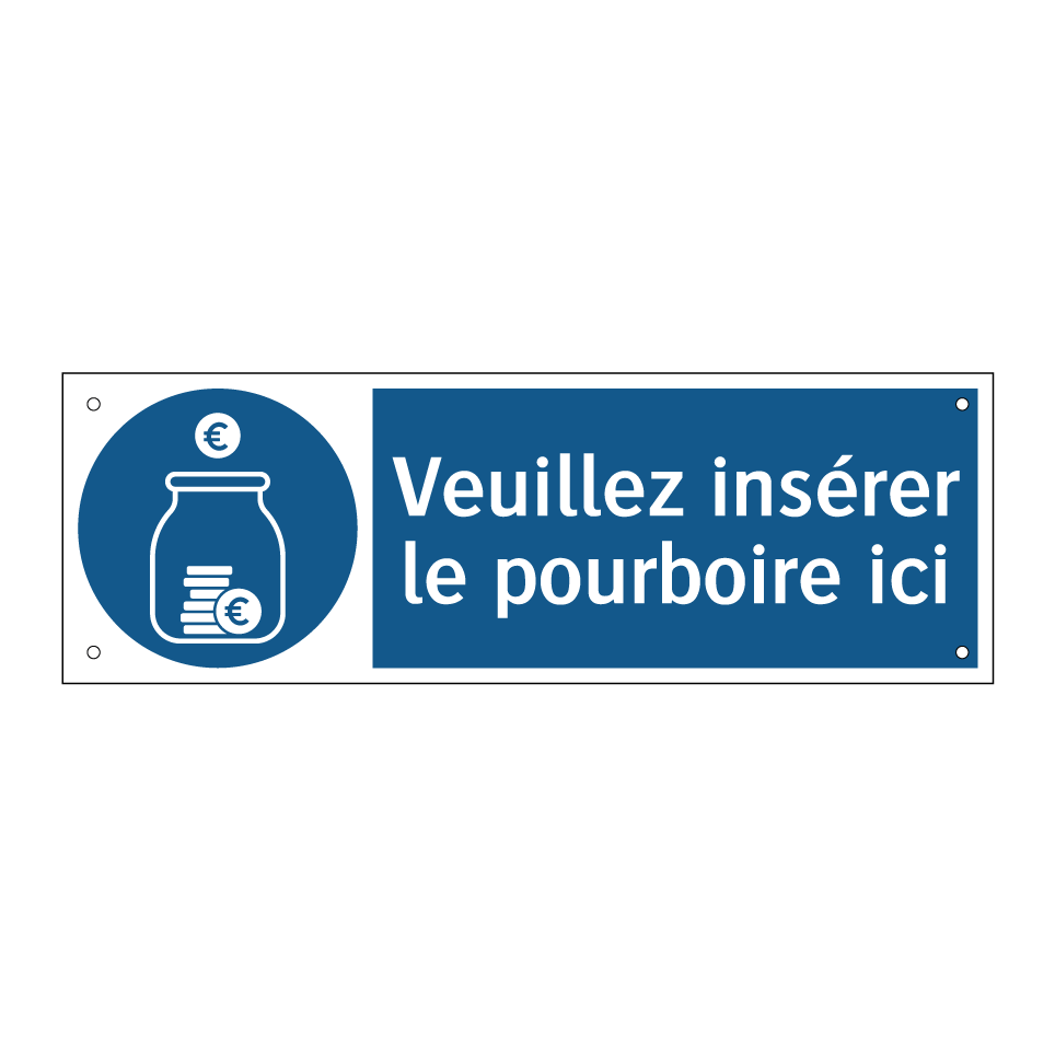 Panneau d'obligation avec le texte : "Veuillez insérer le pourboire ici"