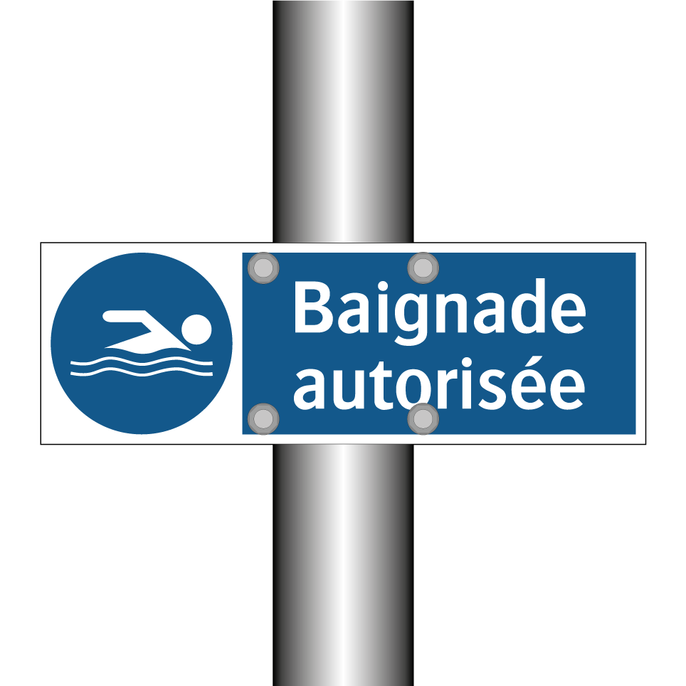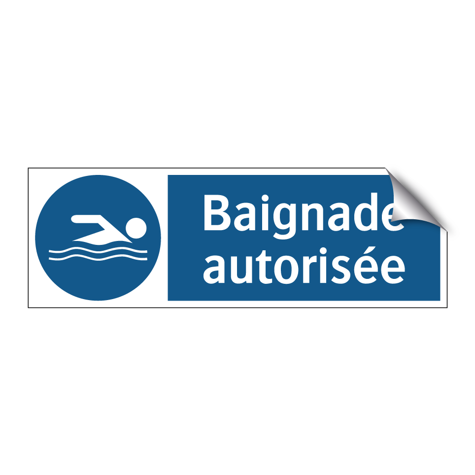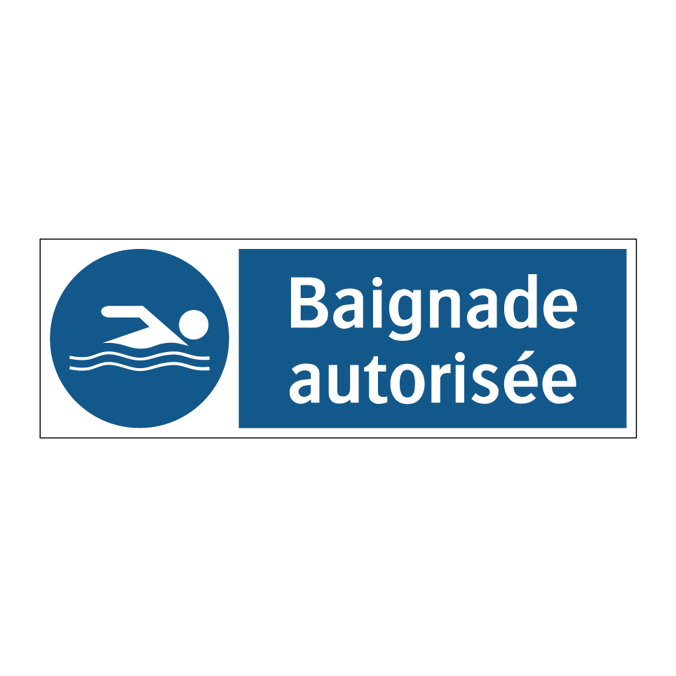 Panneau d'obligation avec le texte : "Baignade autorisée"