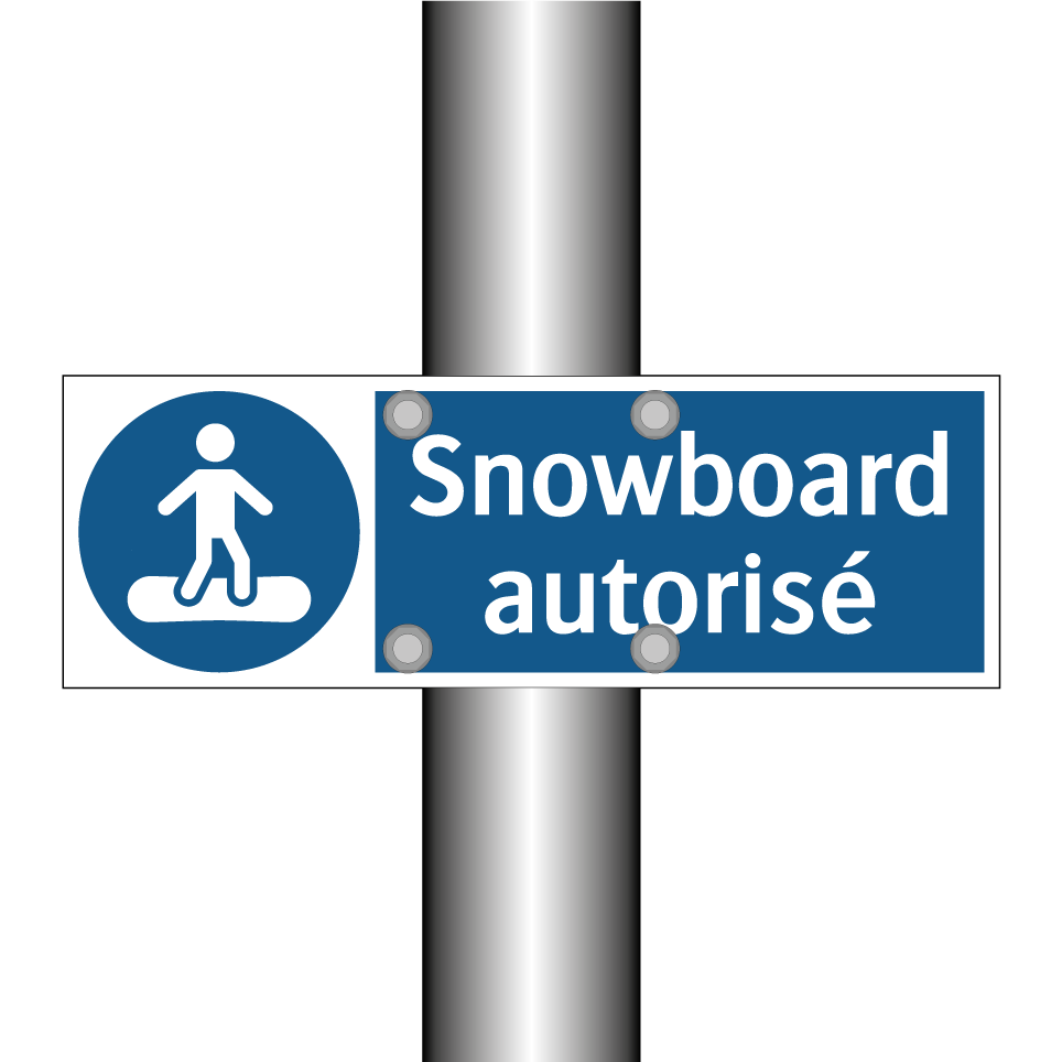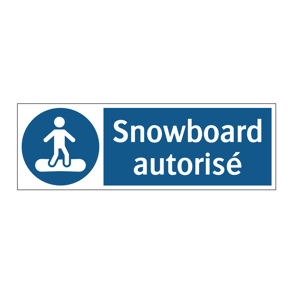 Panneau d'obligation avec le texte : "Snowboard autorisé"