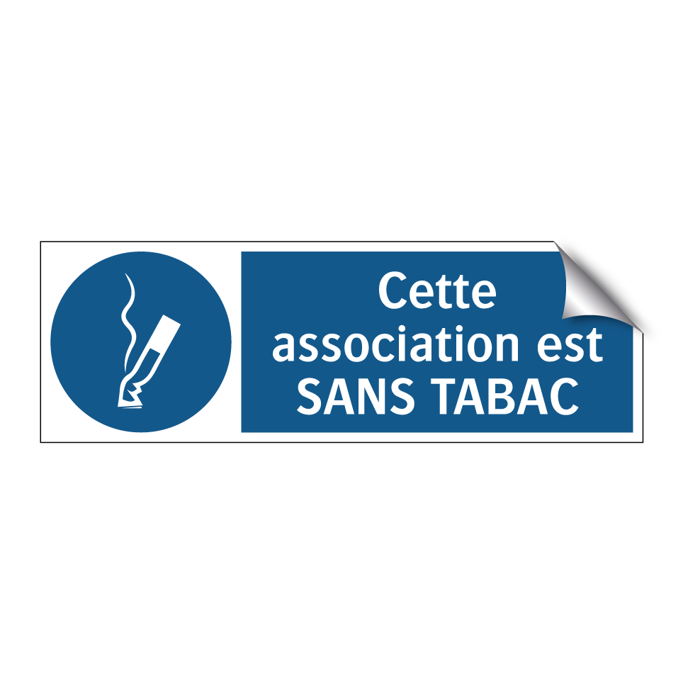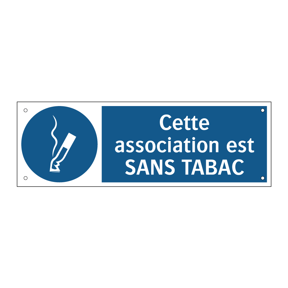 Panneau d'obligation avec le texte : "Cette association est SANS TABAC"