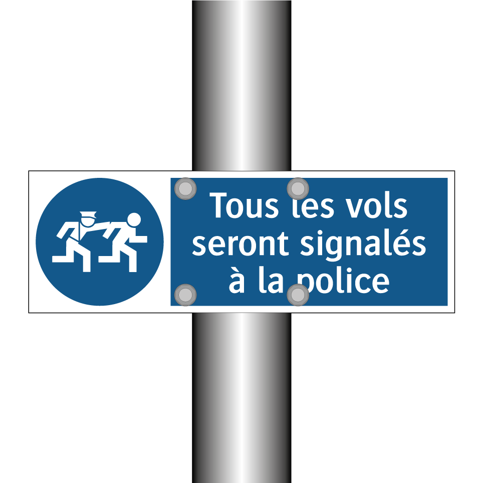 Panneau d'obligation avec le texte : "Tous les vols seront signalés à la police"