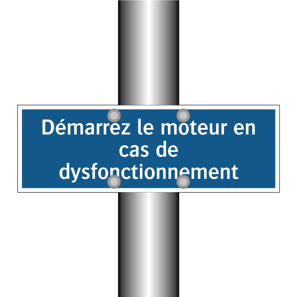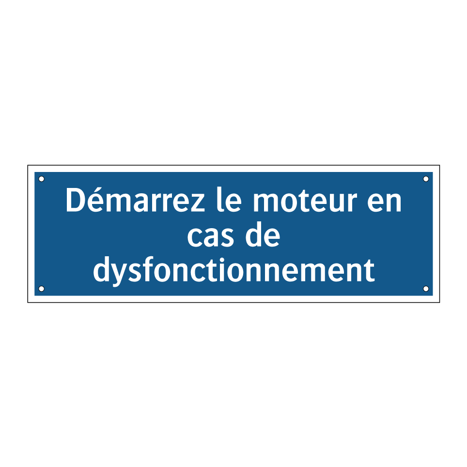 Panneau d'obligation avec le texte : "Démarrez le moteur en cas de dysfonctionnement"