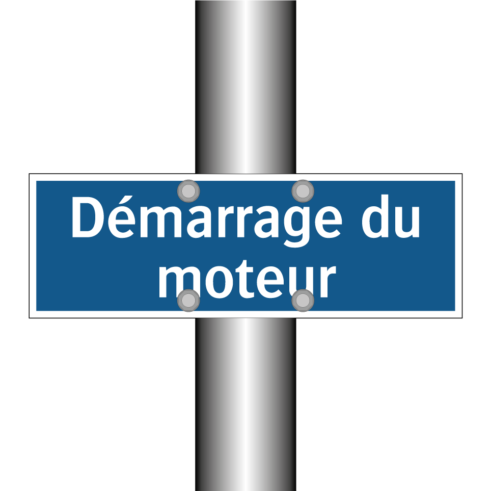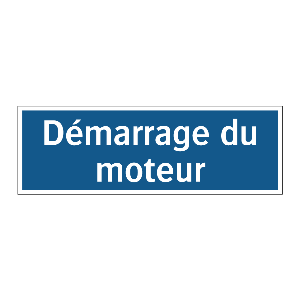 Panneau d'obligation avec le texte : "Démarrage du moteur"