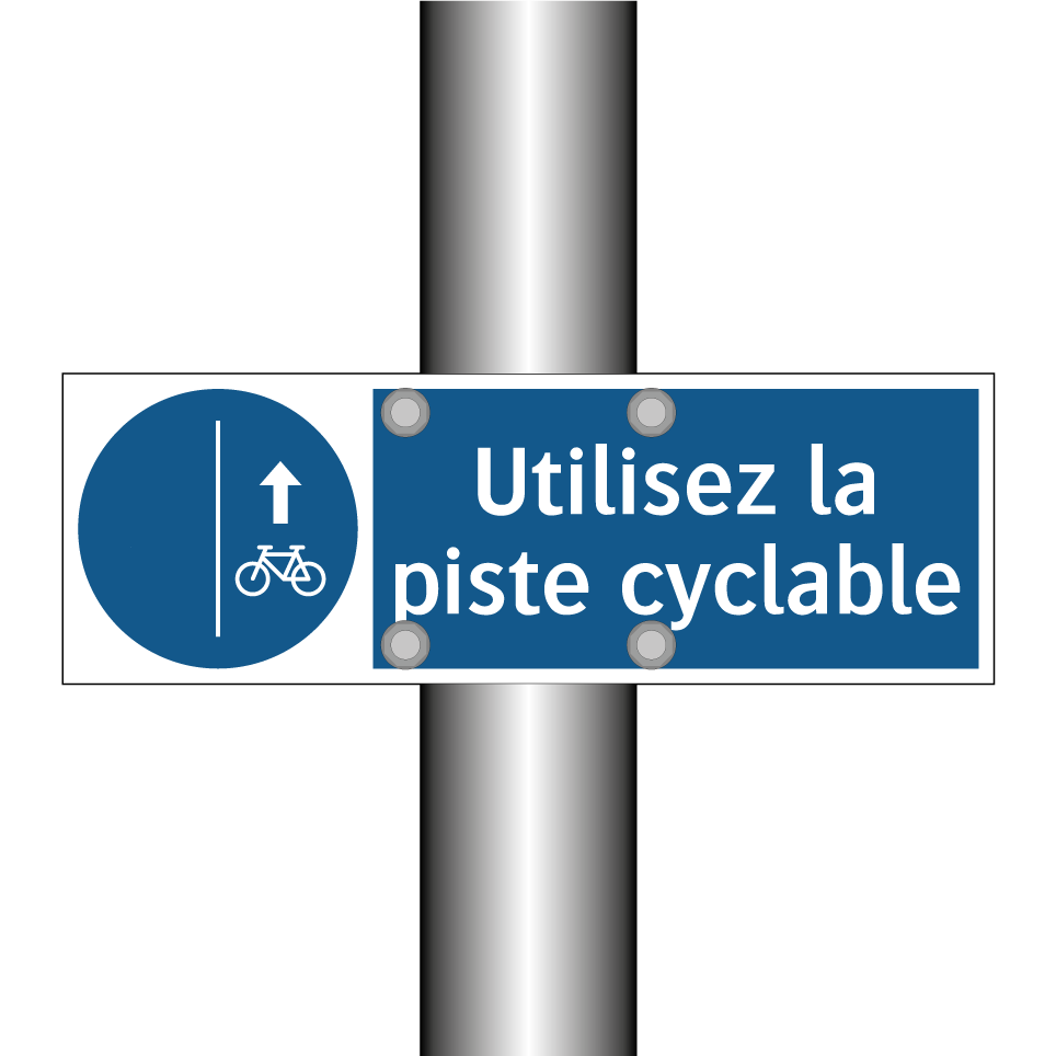 Panneau d'obligation avec le texte : "Utilisez la piste cyclable"